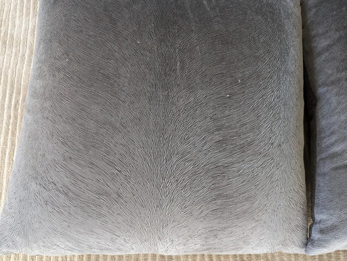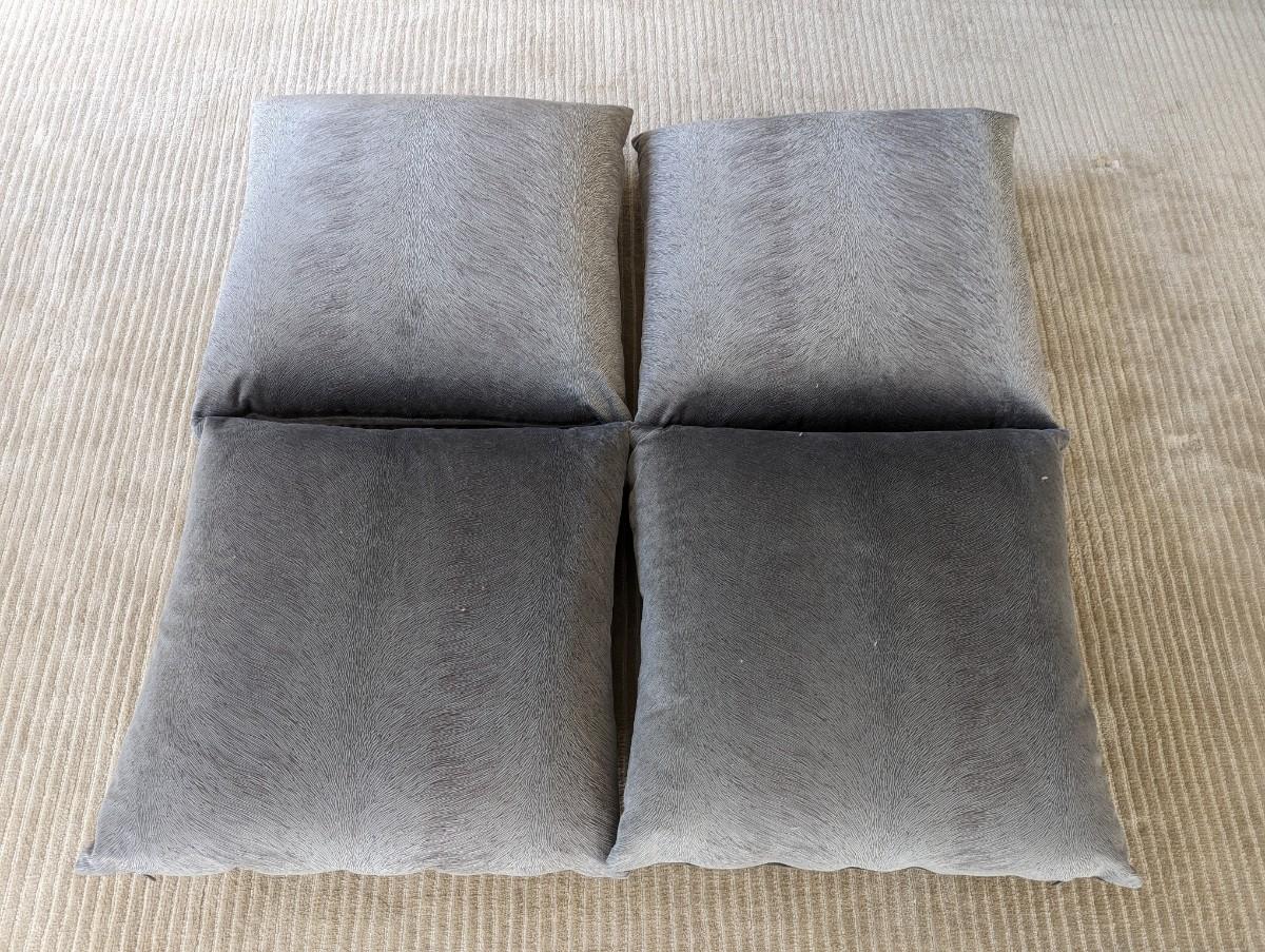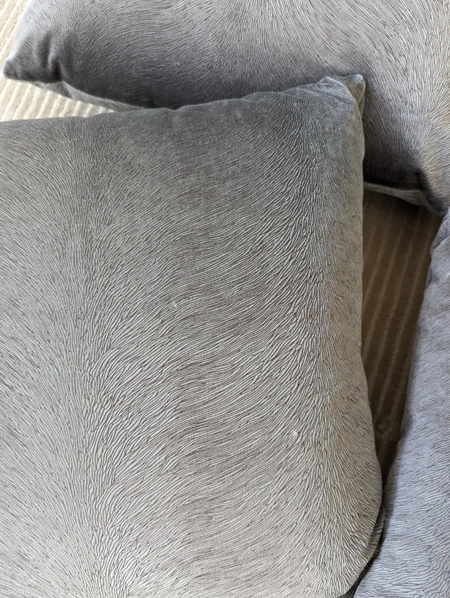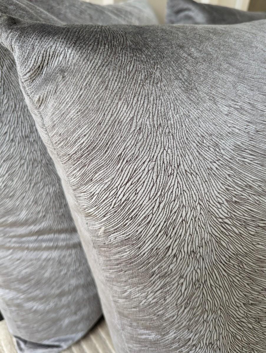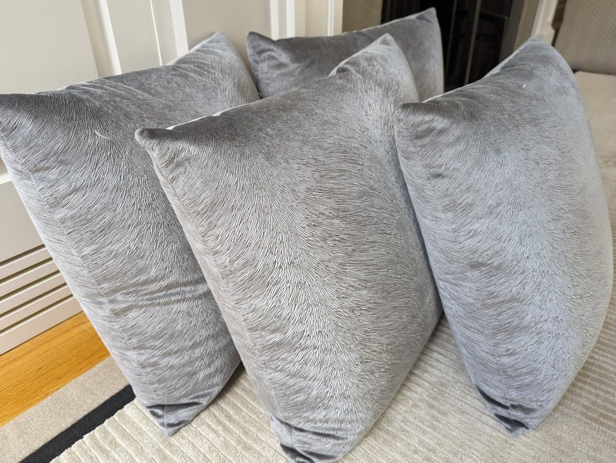 Beautiful custom made pillows in a grey patterned fabric and down blend filled. Set of 4.