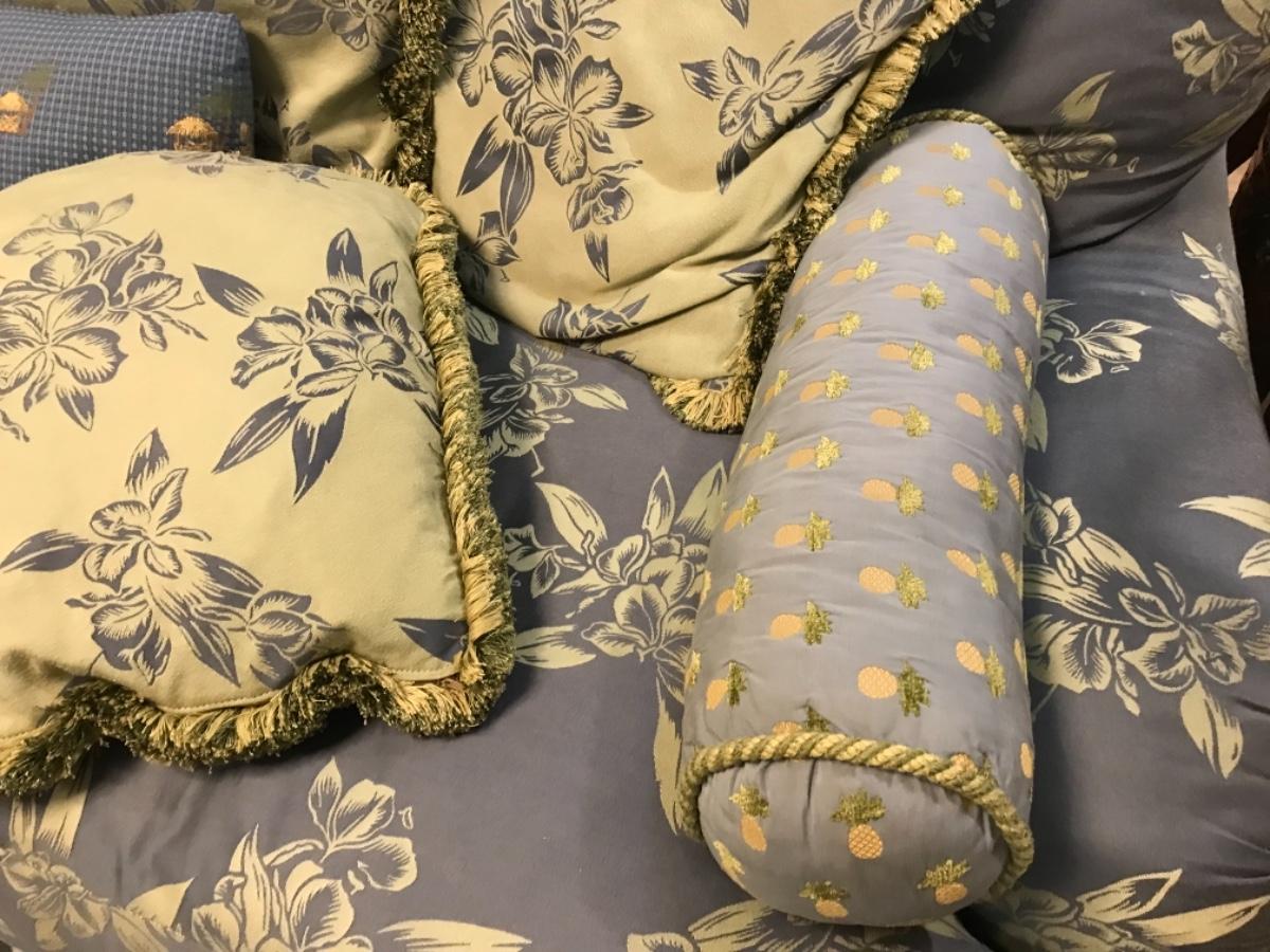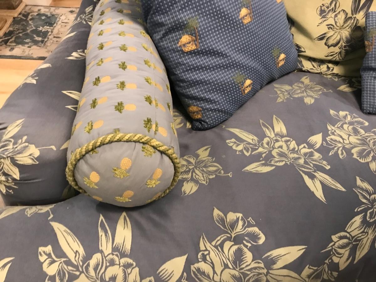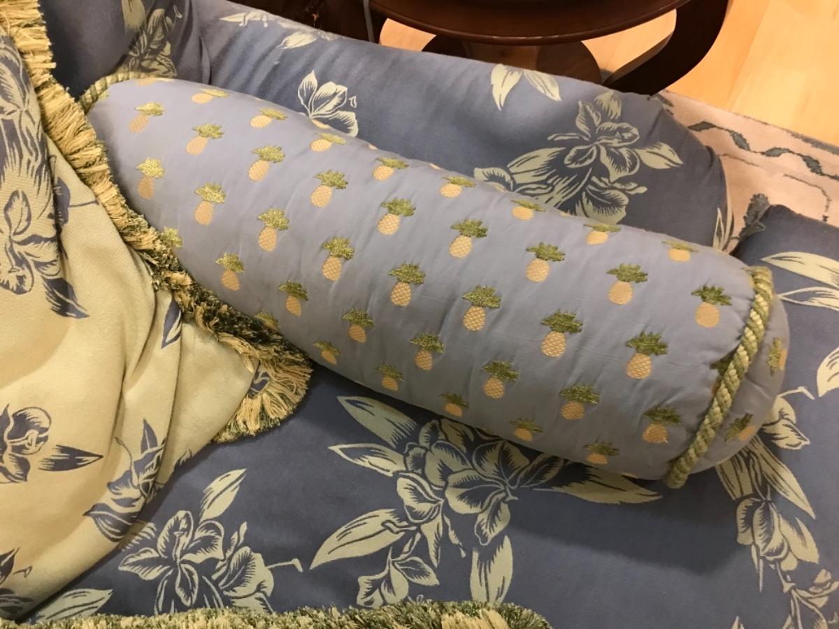 2 bolted pillows with coordinating colors with pineapples