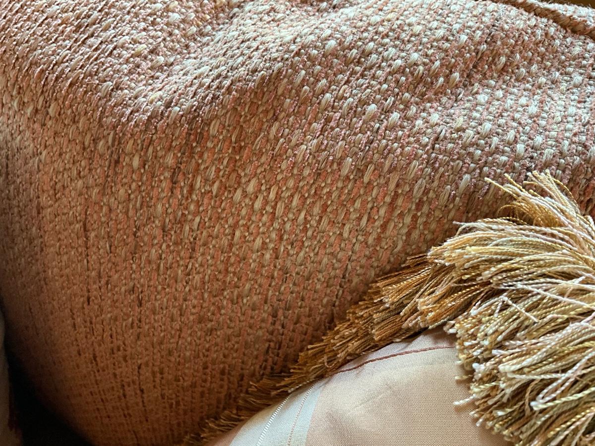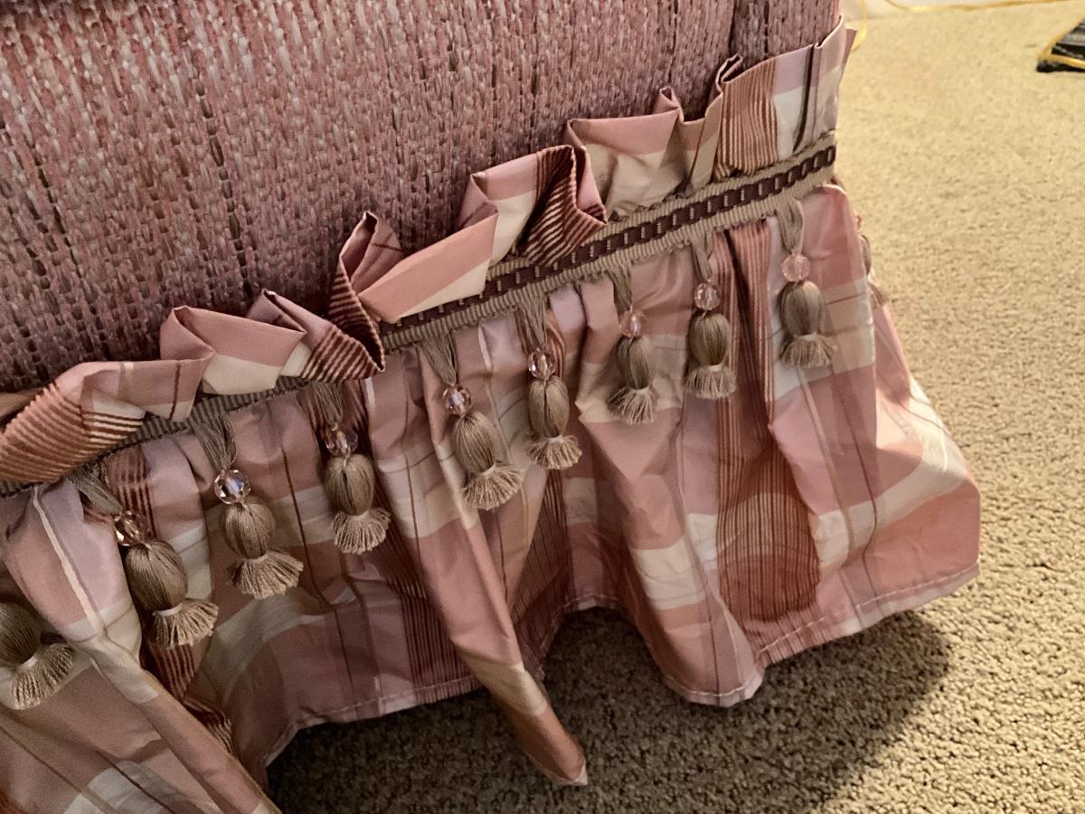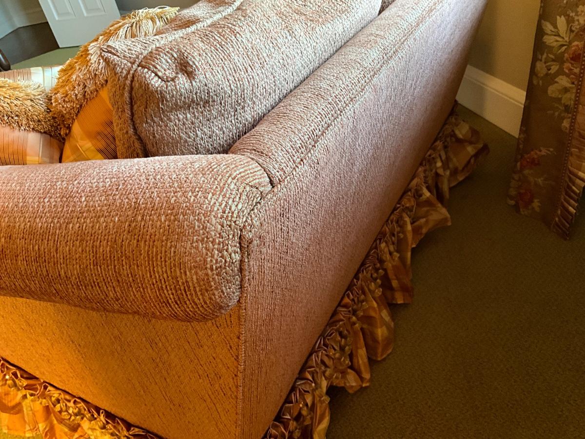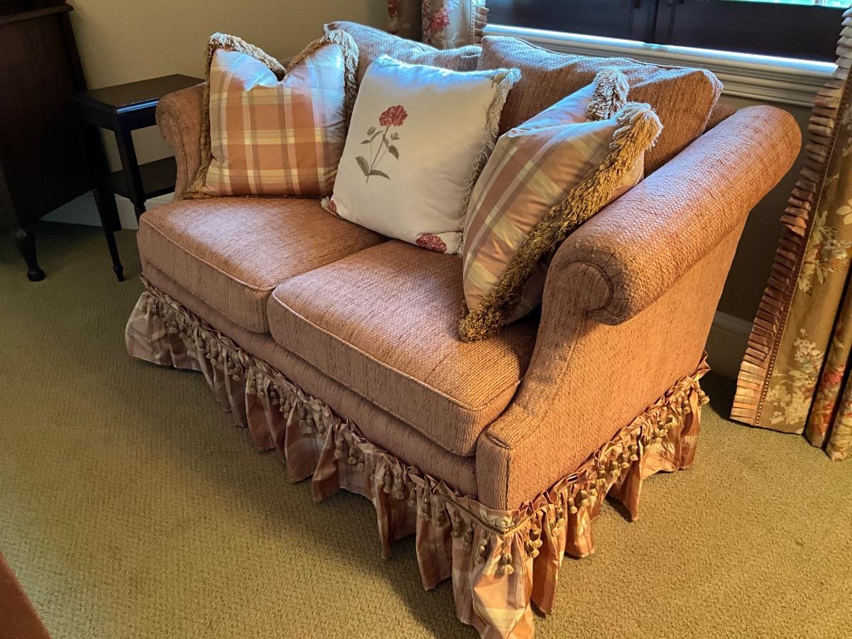 Pink colored loveseat is 37 inches wide, 32 inches deep, 32 inches tall. Seat depth is 20 inches, seat width is 43 inches, and it’s 20 inches from the floor to the seat- comes as seen in pictures