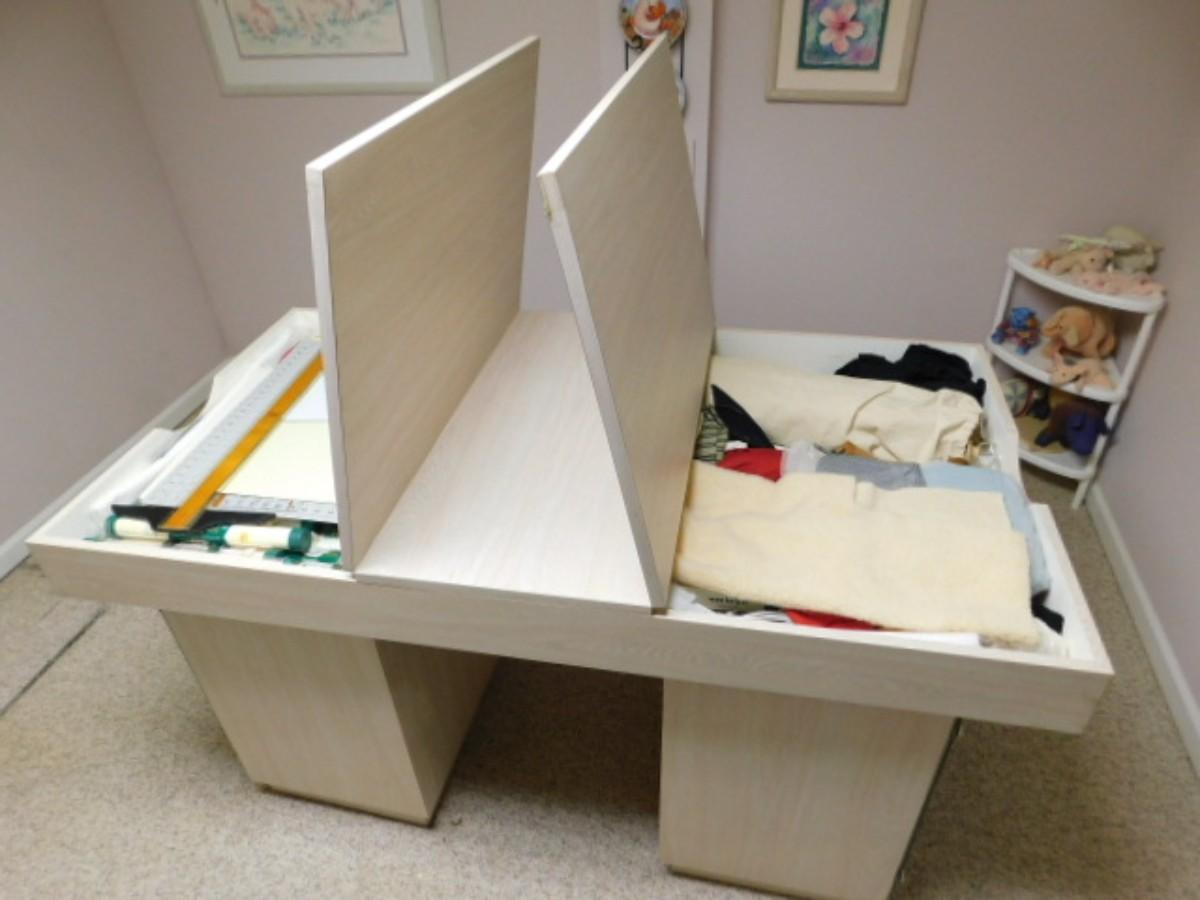 Custom Made Sewing or Craft Table with Butterfly Flip Top with Internal Storage with Side Cabinets (No Contents)