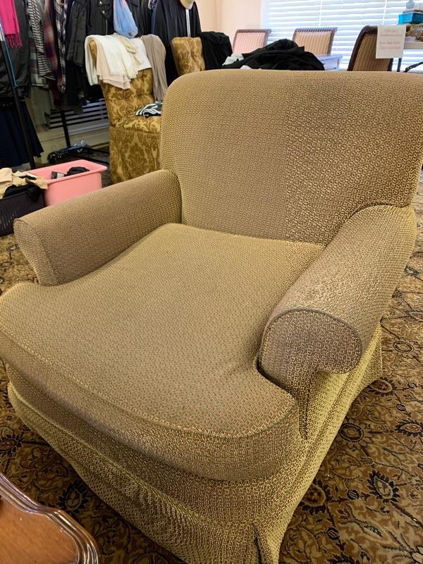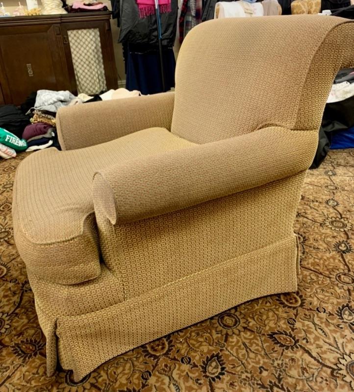 Custom- Made Swivel Club Chair: Includes a set of matching Fabric Arm Covers