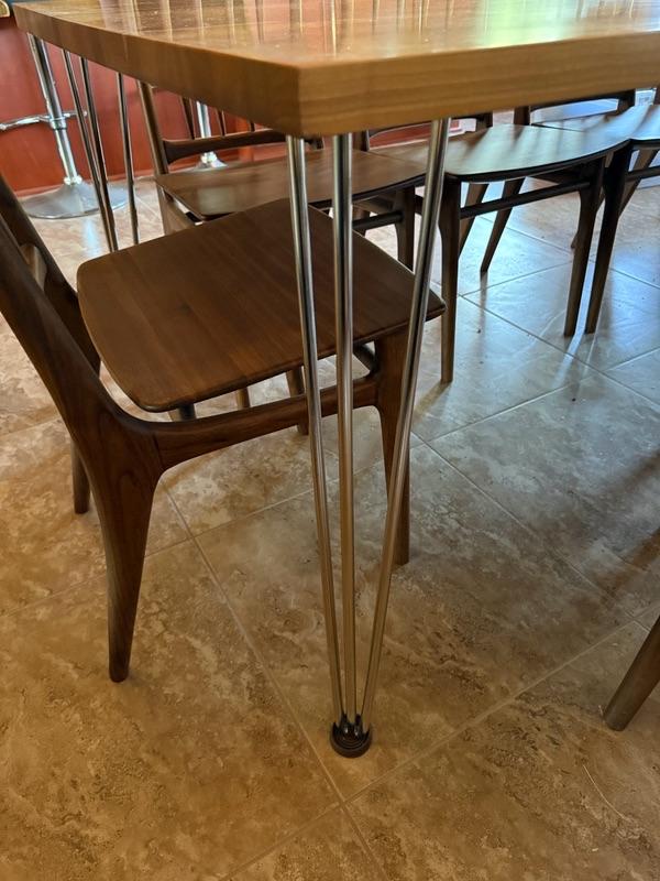Fabulous Mid-Century Style Dining room or conference room table and chairs - custom solid wood - one incredible solid table top with 10 chairs (and one extra chair that is a bit loose - not shown - so 11 chairs). Mid Century style legs.