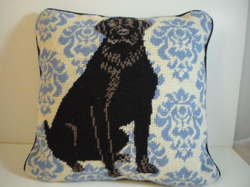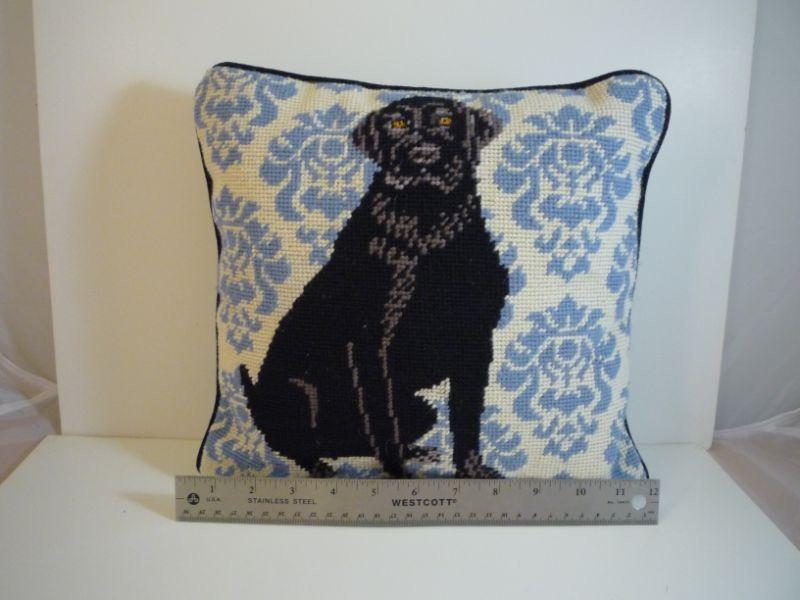 Beautiful, handmade custom pillow - black lab needlepoint - black velvet back cover - zipper close. Very well made.