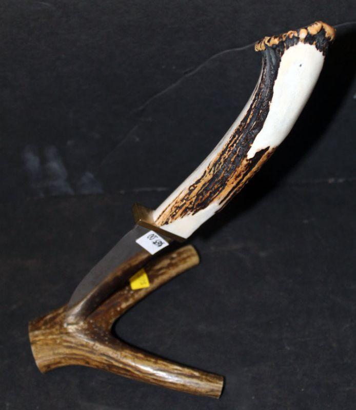Custom scrimshaw hunting knife, antler stand (#315)