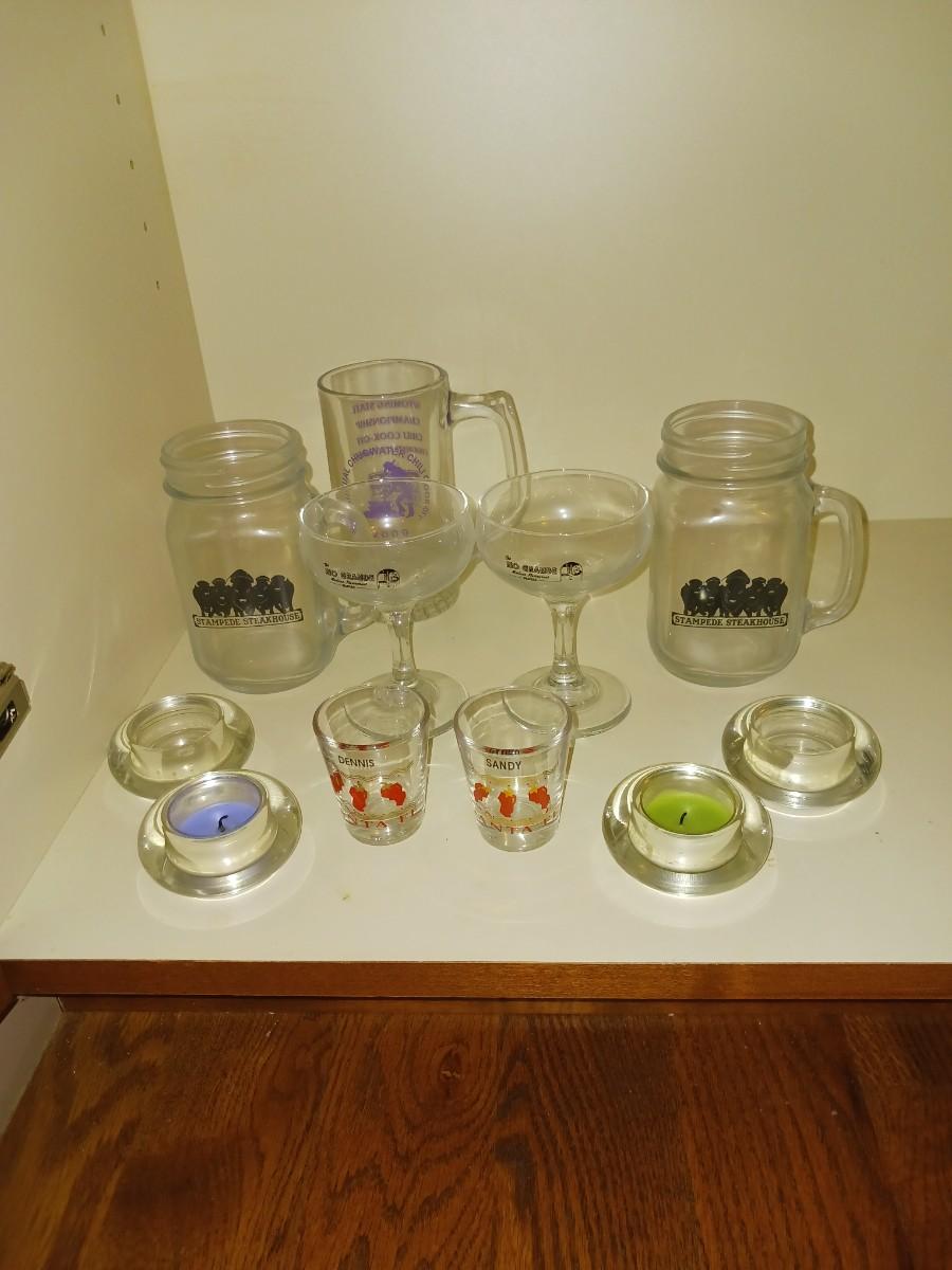 CUSTOM SHOT GLASSES, STAMPEDE STEAKHOUSE MUGS, TABLE CANDLES AND MORE