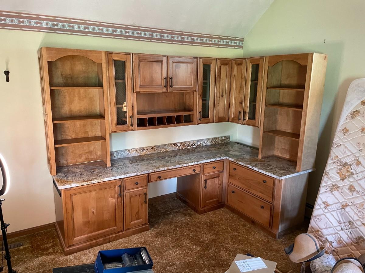 Custom Solid Wood and Marble Hutch / Work Station / Cabinetry