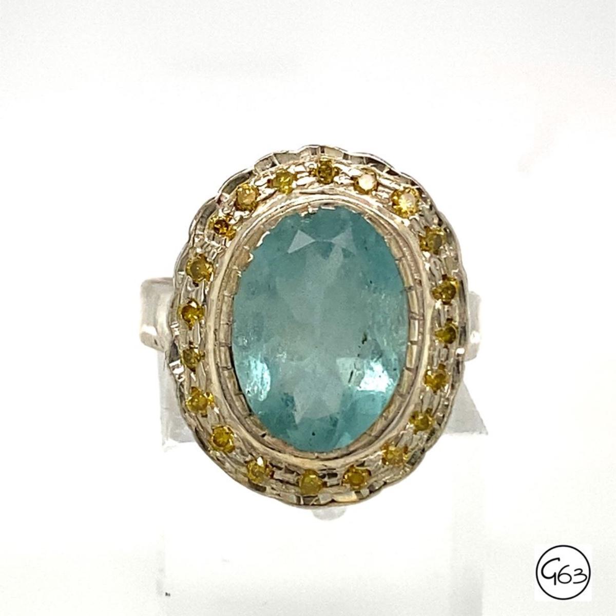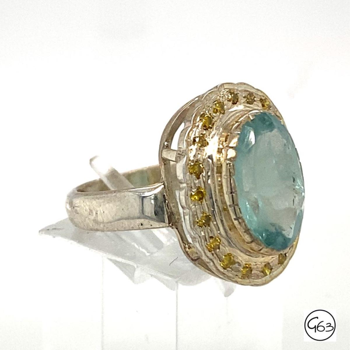 Custom Sterling Aqua & Yellow Sapphire Ring, Size 6.5