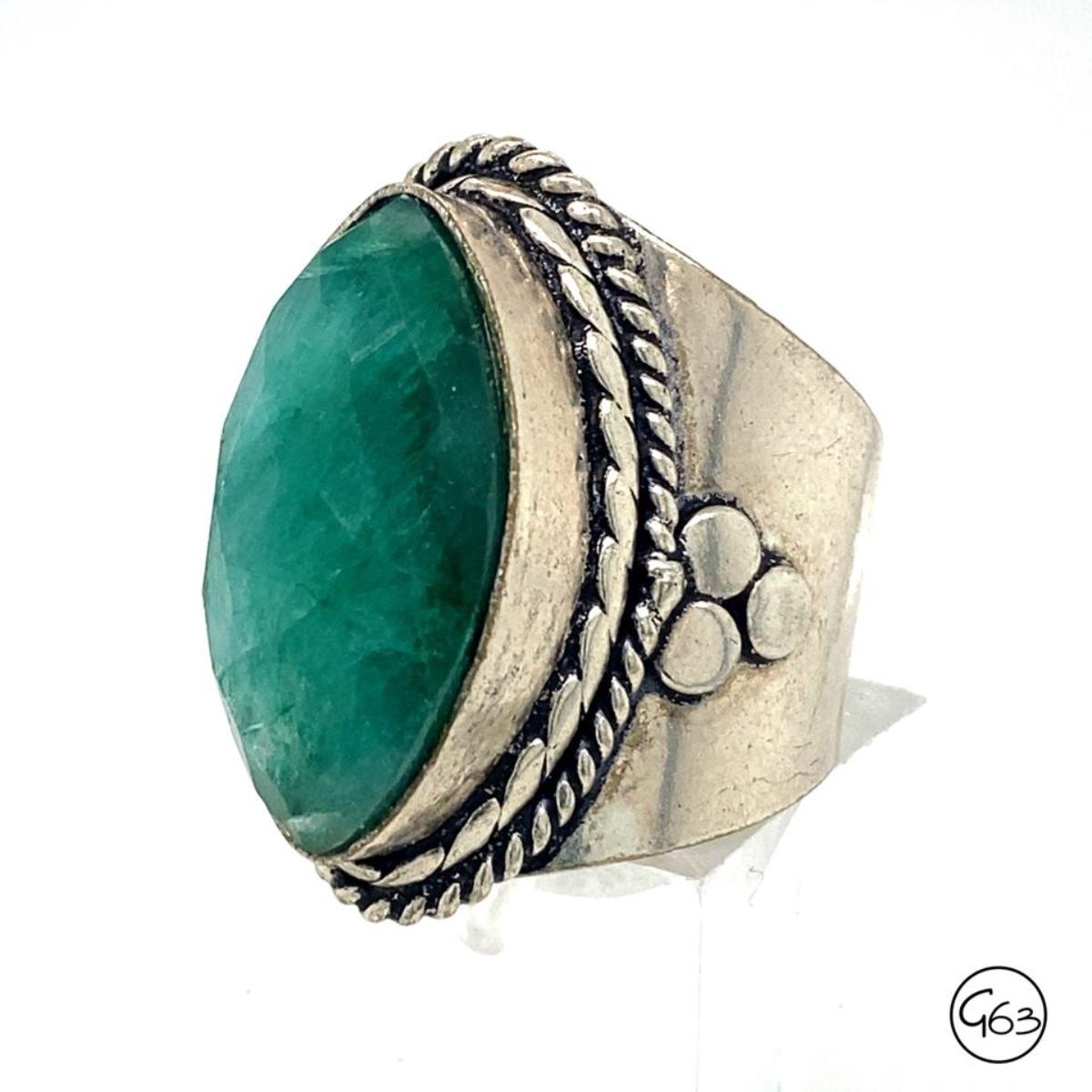 Custom Sterling Jadeite Ring, Size 7.5