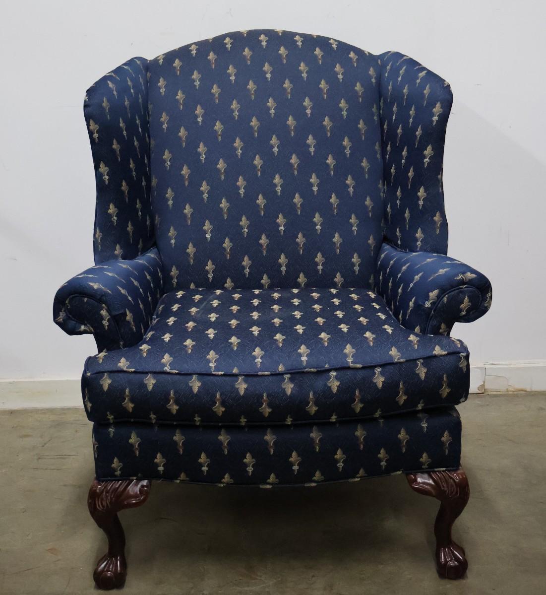 Custom Upholstered Wing Back Chair with Ball & Claw Feet