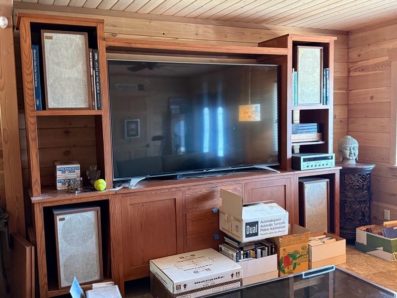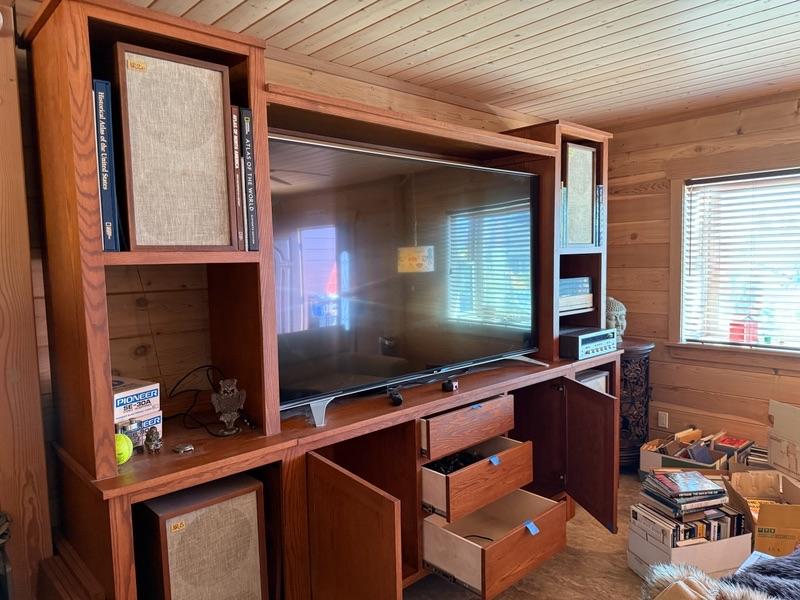 Custom Wood Entertainment Center with 79" LG TV & 4 Acoustic Research Speakers