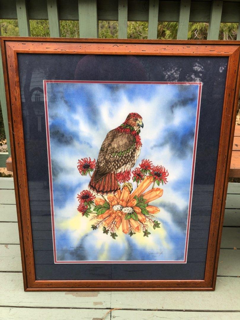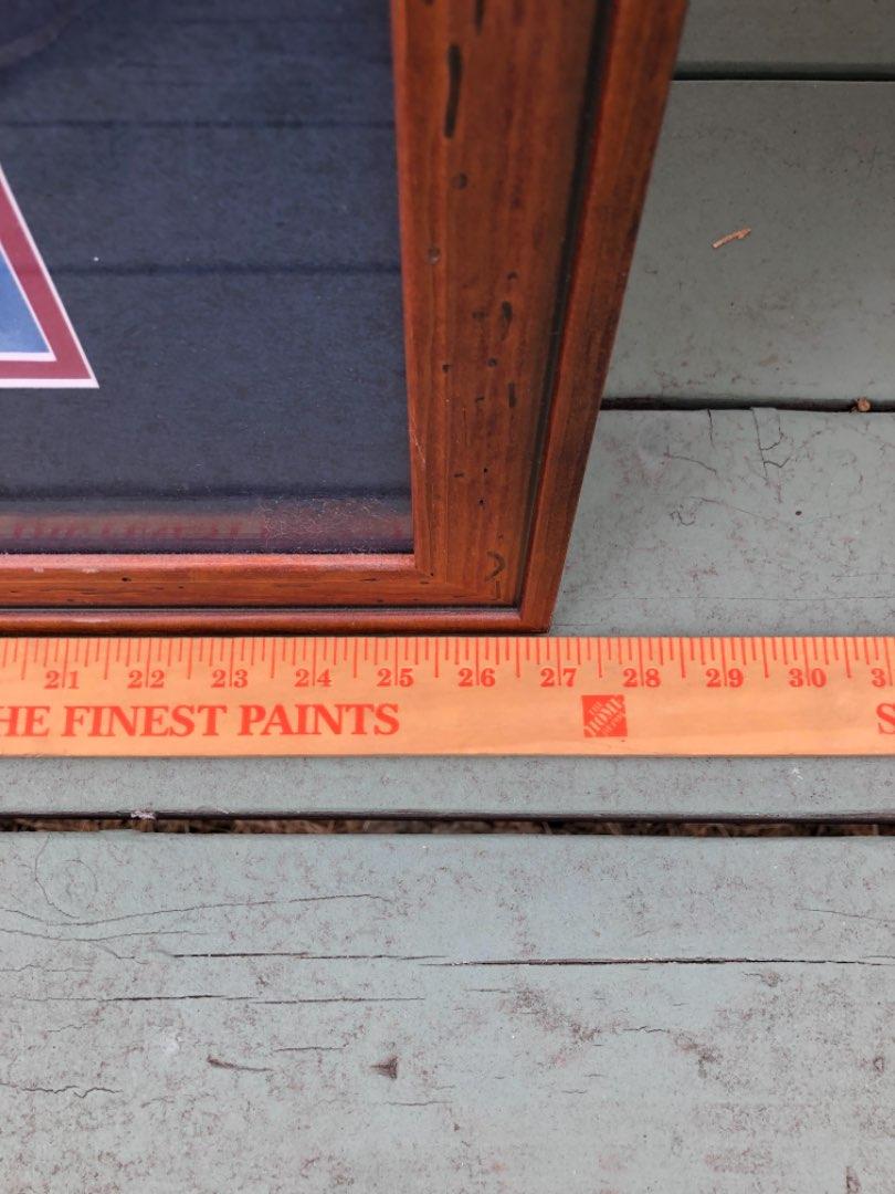 Picture in beautiful wood frame and measurements are 17 1/2” x 23 1/4” tall.