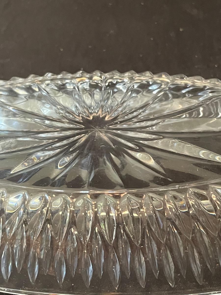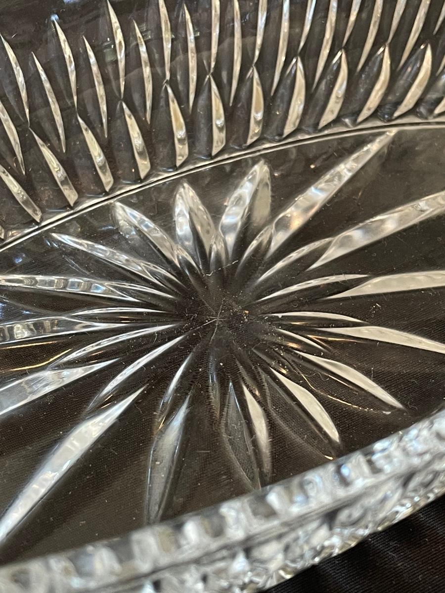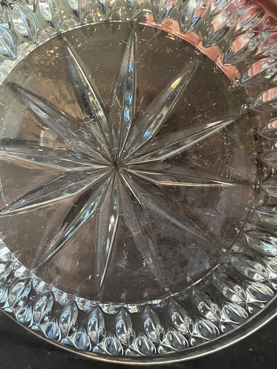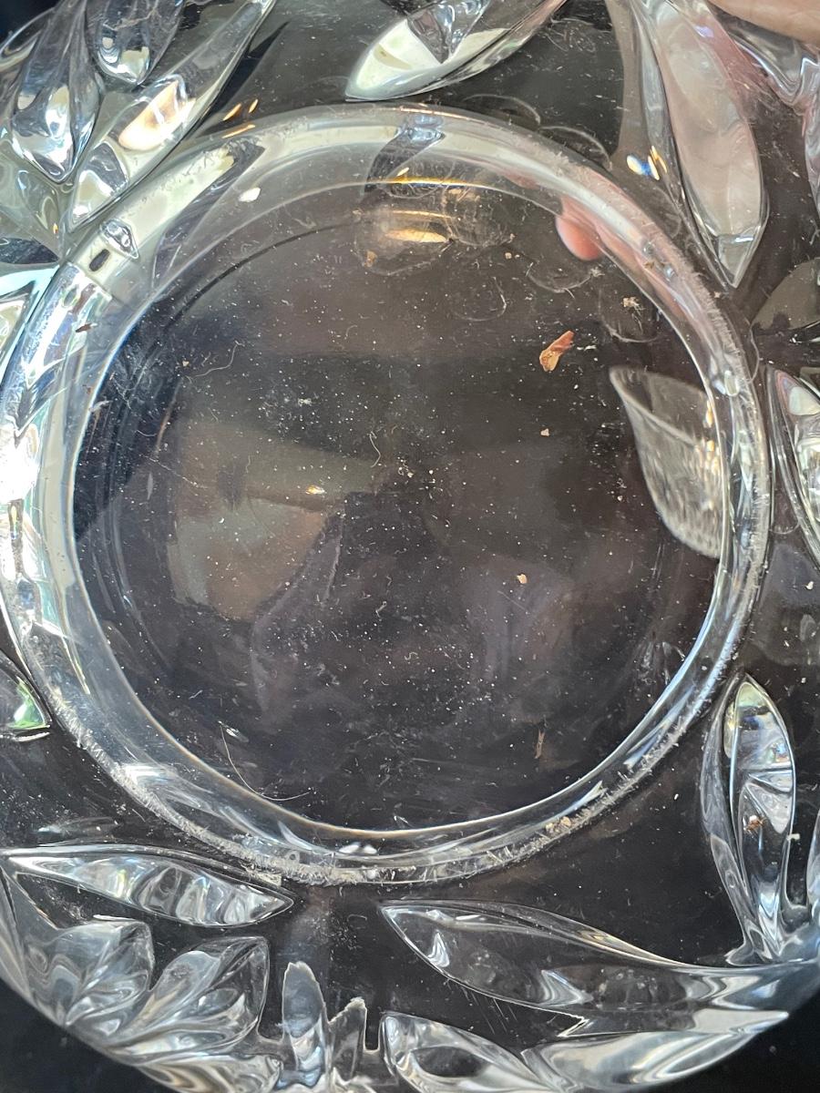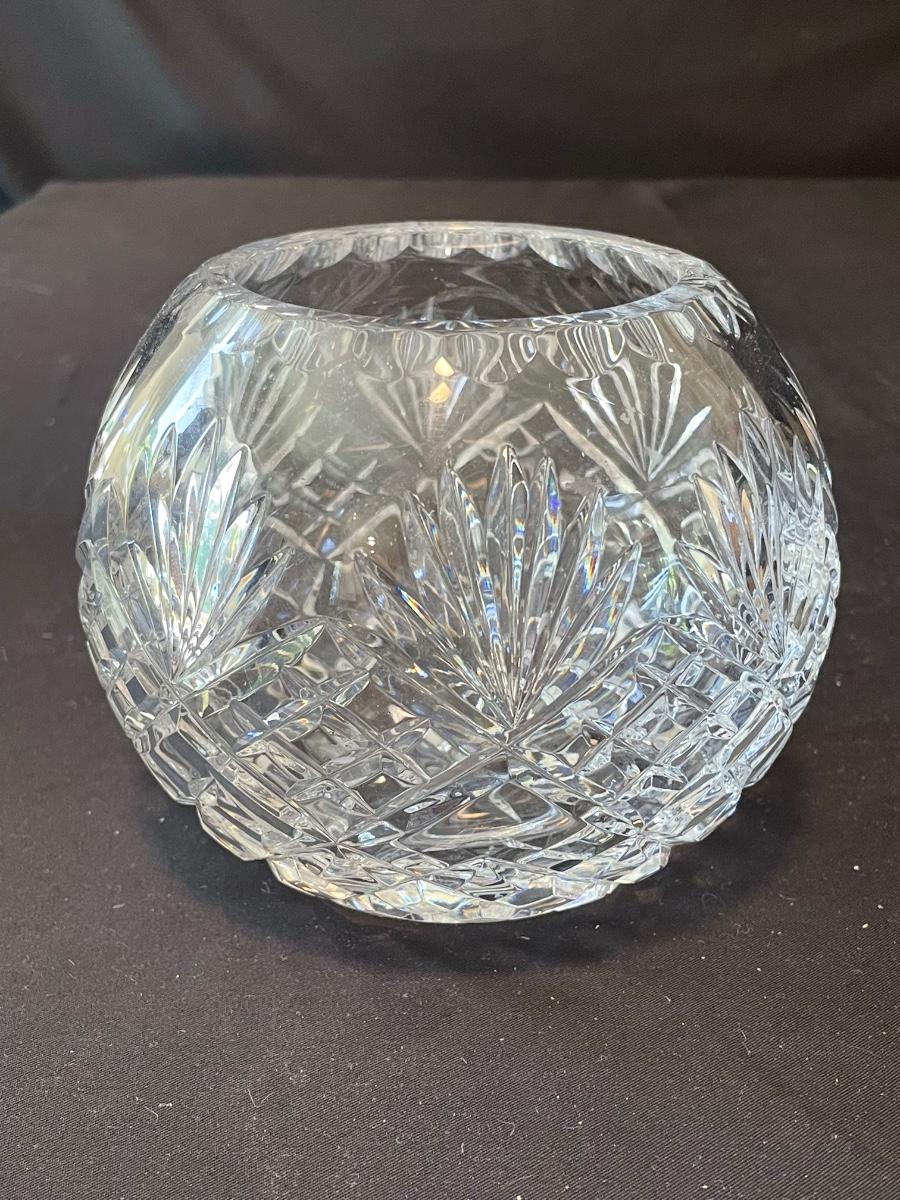 A nice assortment of cut and formed glass, eight items altogether that includes bowls, dishes and more all in good condition. Handled basket like piece measures 3” x 4” x 4”. Fishbowl in cover photo is 5" d x 4" h. Local Pickup Only