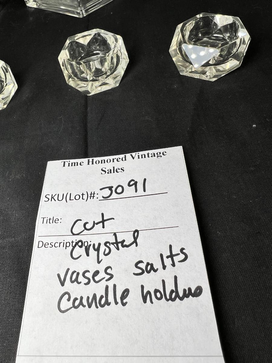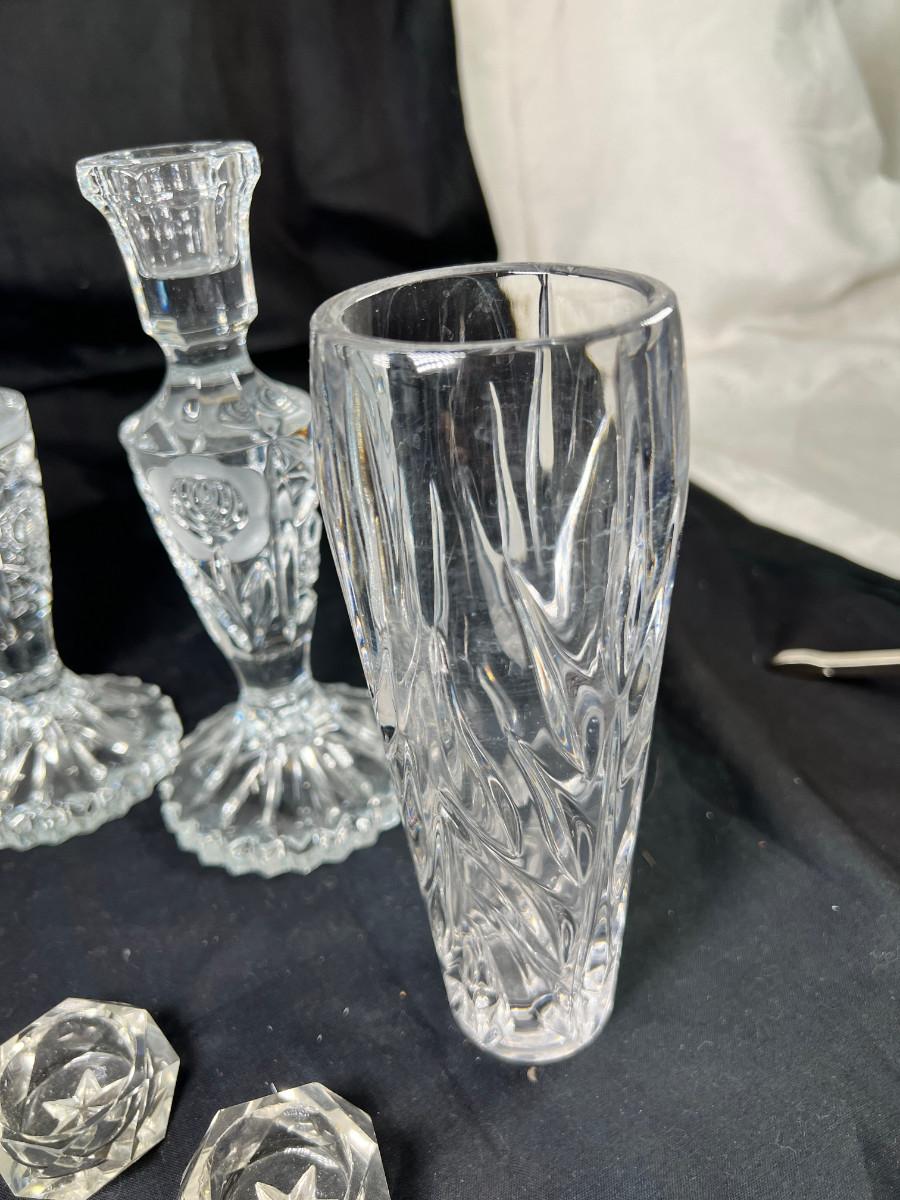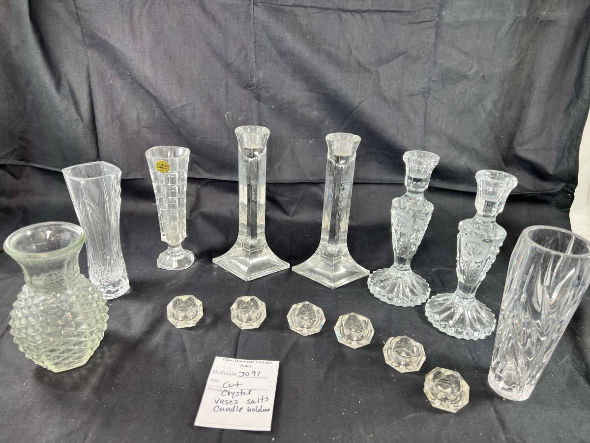 Cut crystal salts, Candle holders, vases