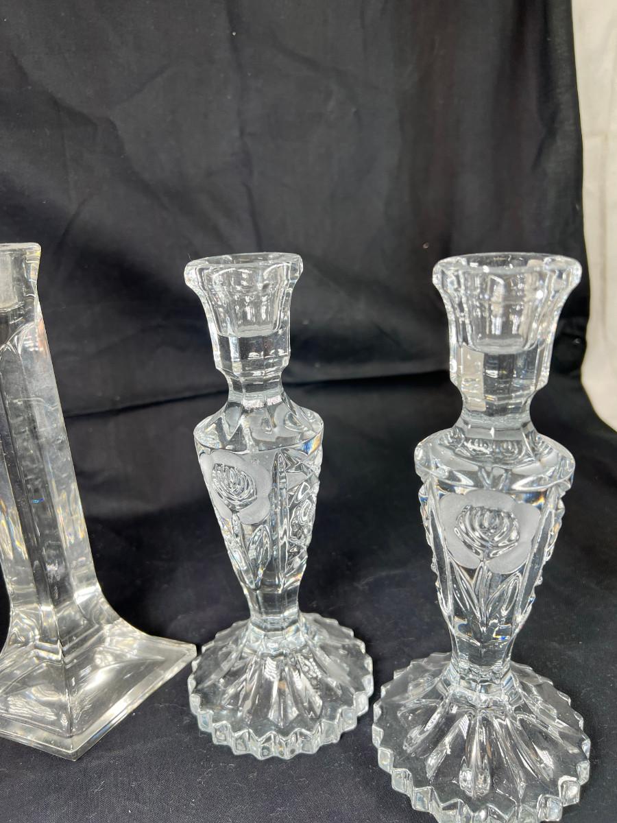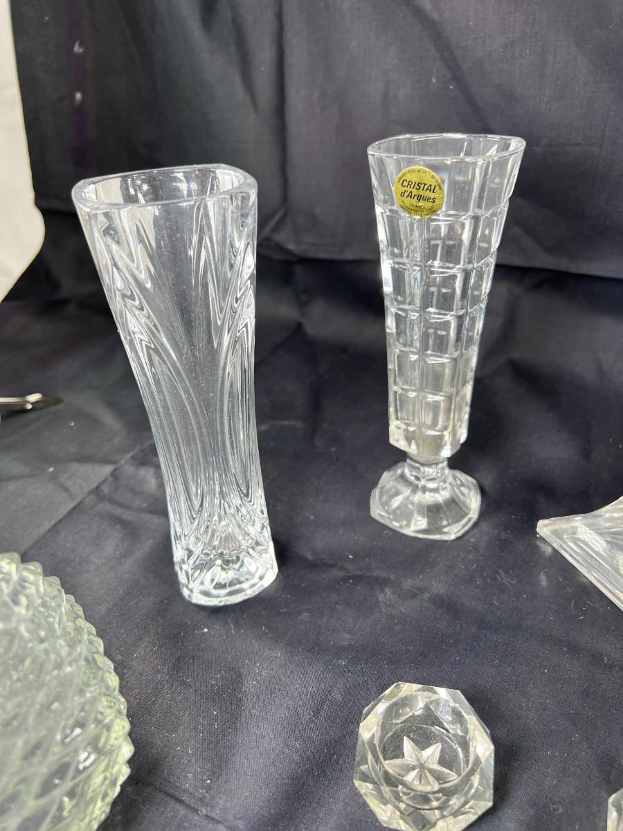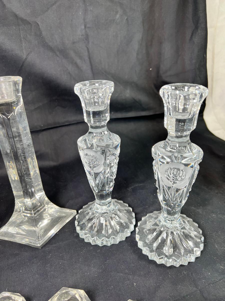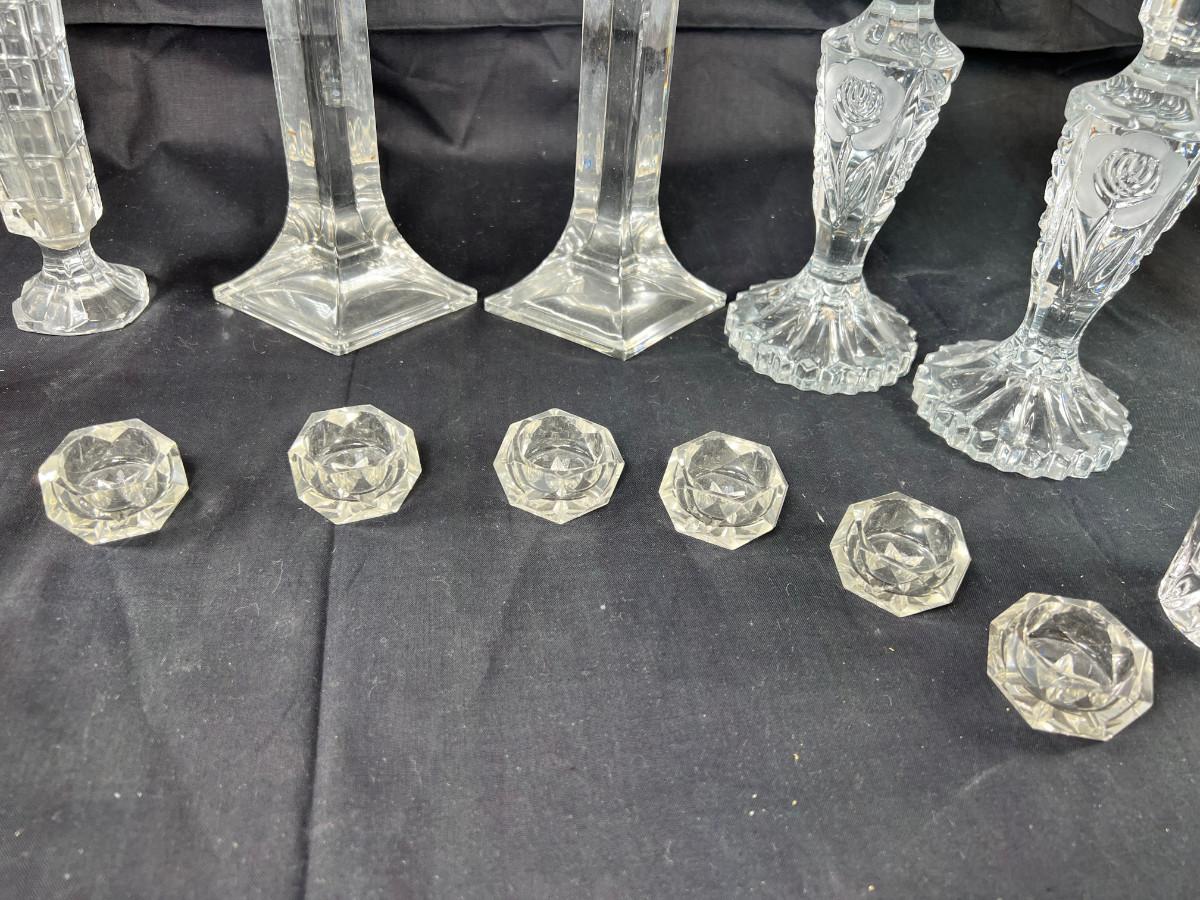 Cut crystal salts, Candle holders, vases