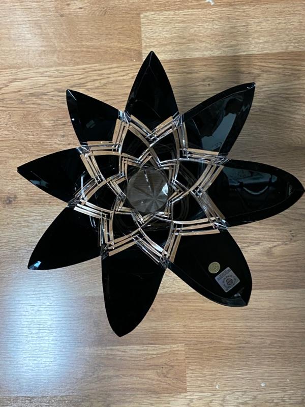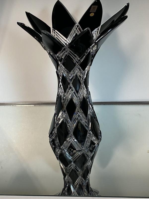 Spectacular Bohemian Czech Republic black cut to clear lead crystal vase. 12" tall, 5" diametr of base