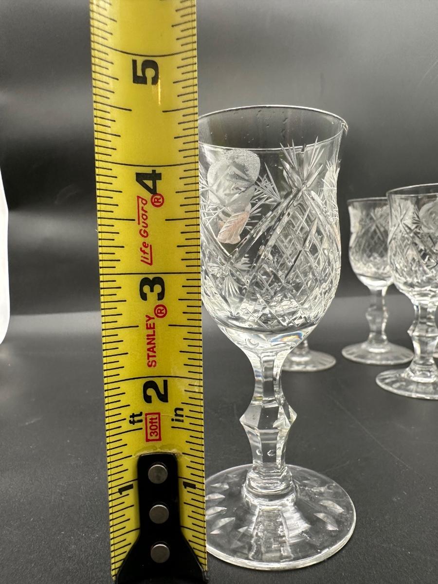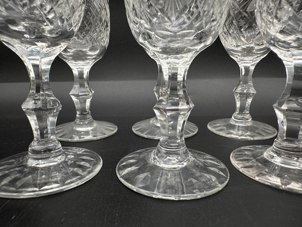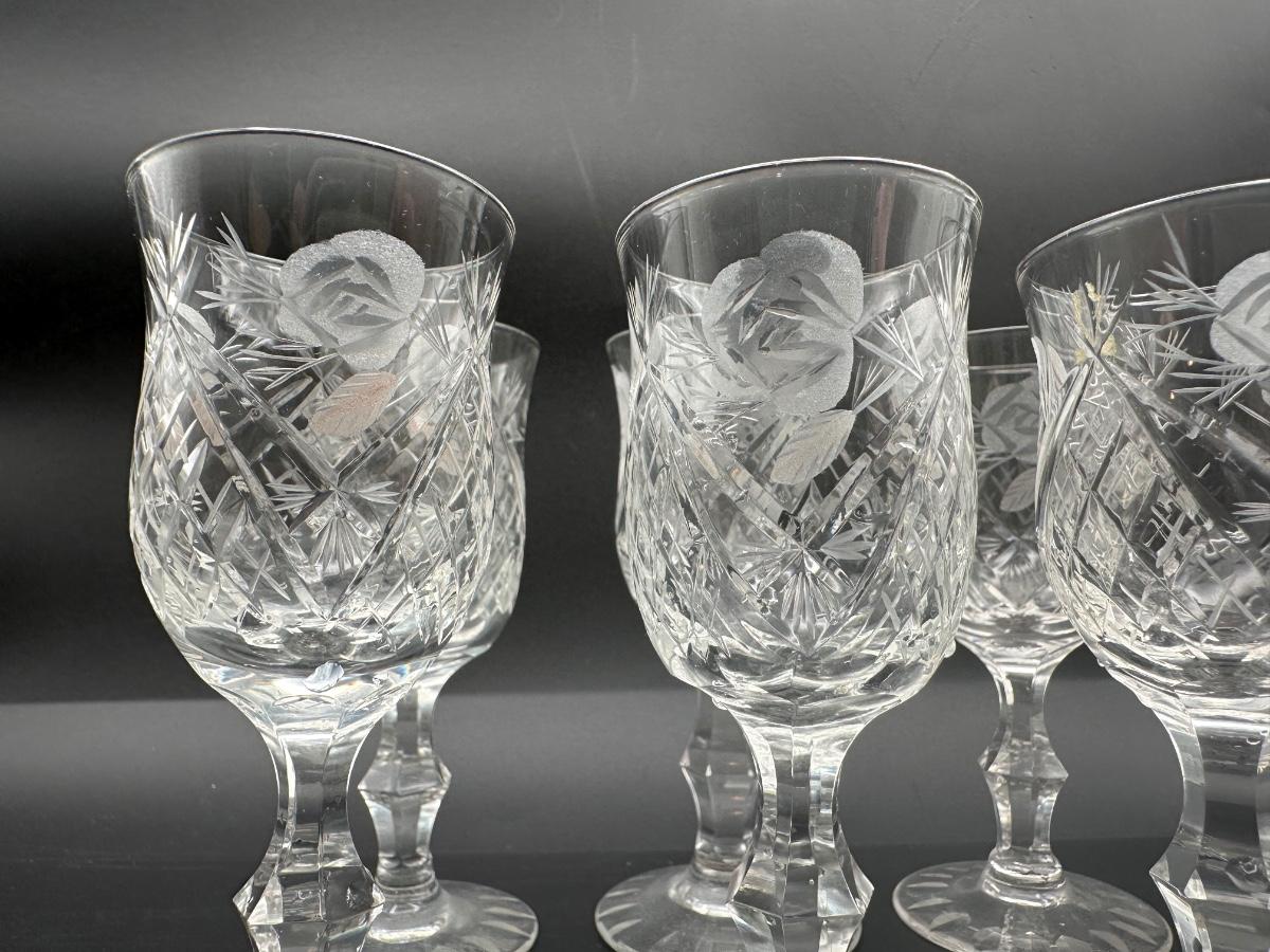 Set of 6 Cut Crystal Wine Glasses with Etched Rose Design