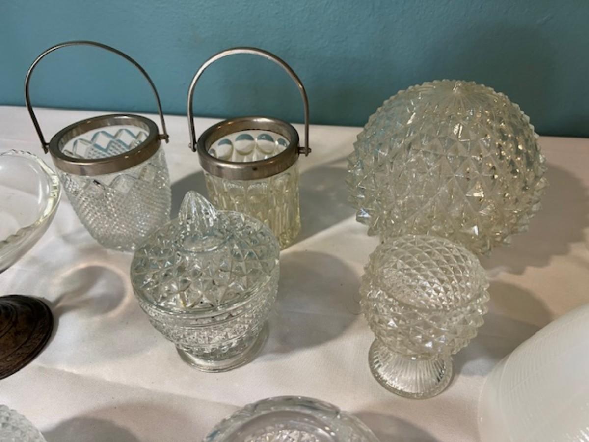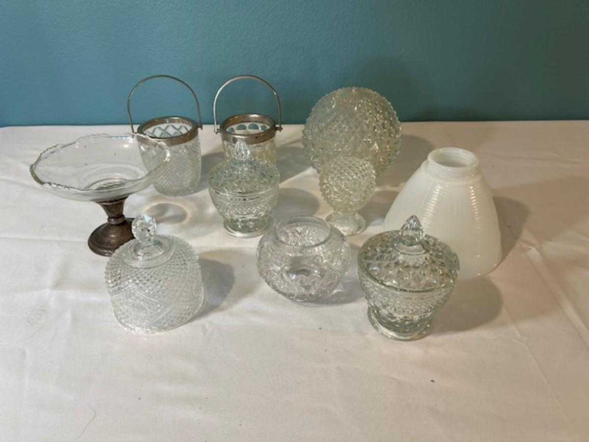 Includes a compote with weighted sterling base, and more. Total of 10 pieces. Measurement of largest: 5"H.