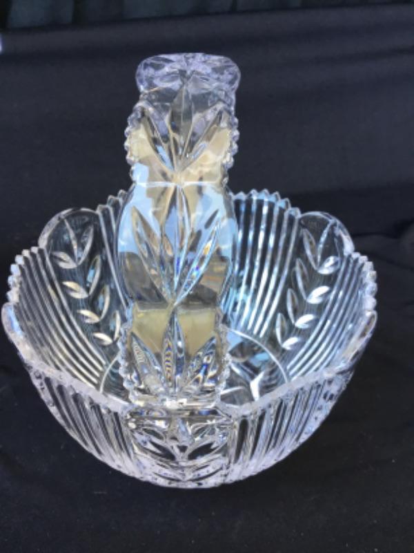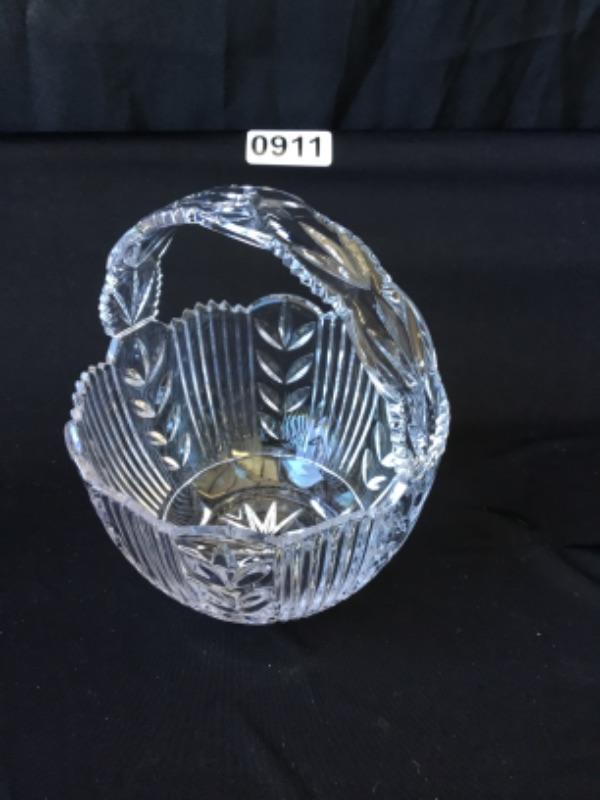 Cut glass basket bowl with handle lot 911 I