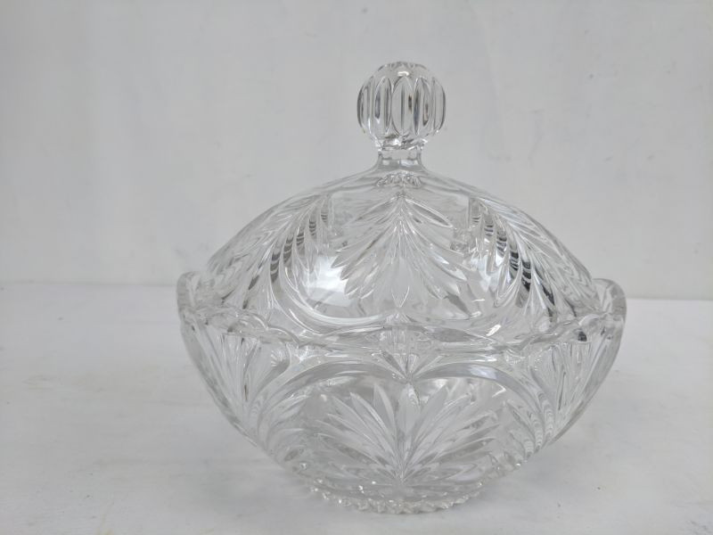 Cut Glass Bowl W/ Lid, Vintage, Scalloped