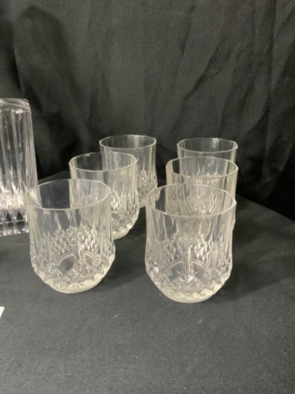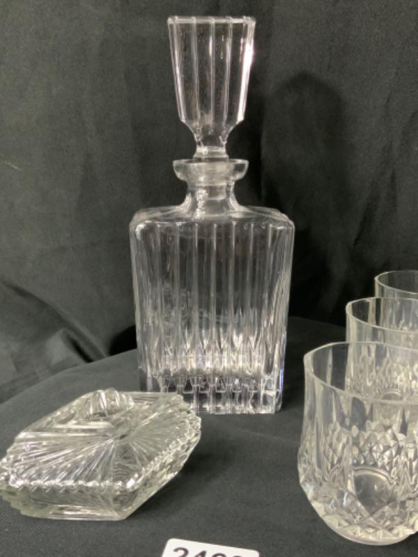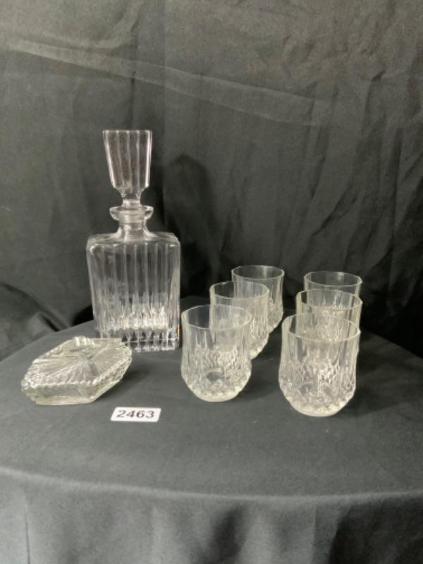 Cut glass decanter, candy dish, and six glasses lot 2463