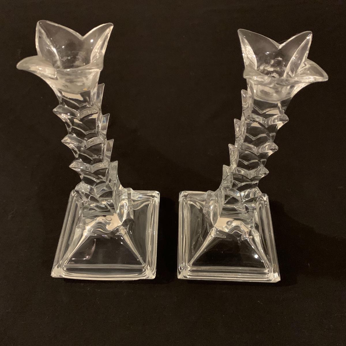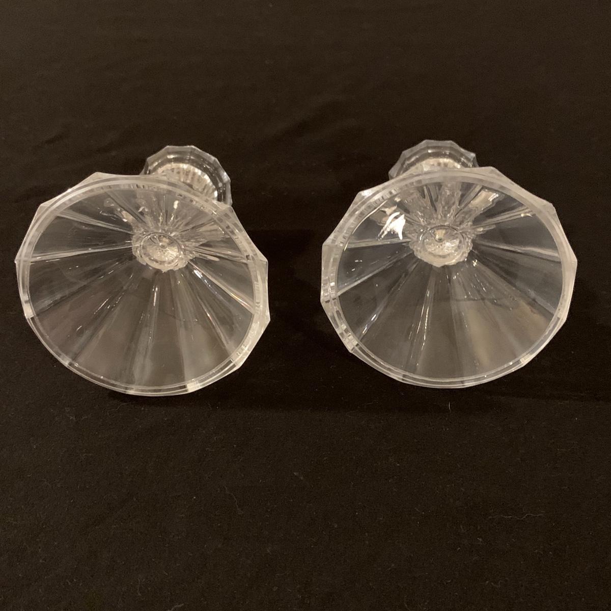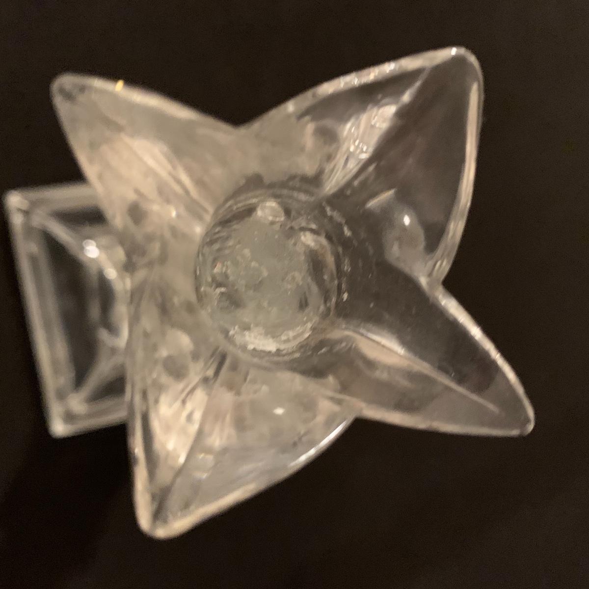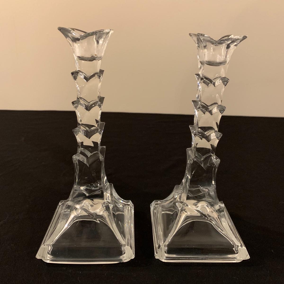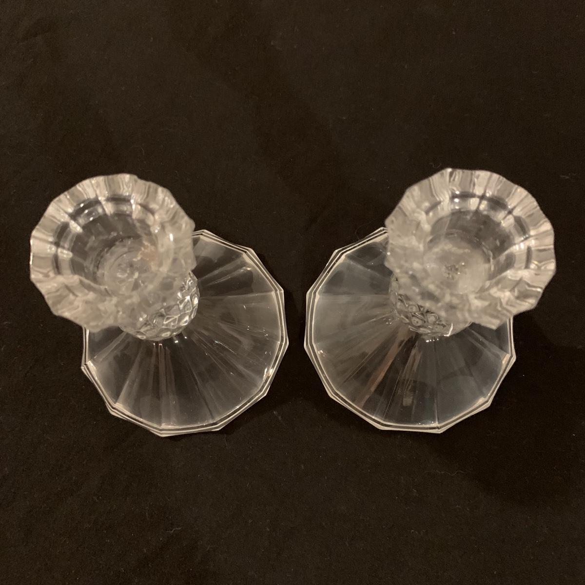 This lot includes 11 ornate glass items, some of which are pressed glass and some are cut glass. There are two pairs of candlestick holders, which have some previous candle residue. There are two smaller bowls, as well as a lidded candy dish and butter dish. There is a deviled egg platter and two larger dishes, one of which have five parts sectioned off. The two platters are the largest items and are 12” in diameter. The smallest bowl is 4.5” in diameter. No chips are apparent and everything appears to be in very good condition. Shipping Available