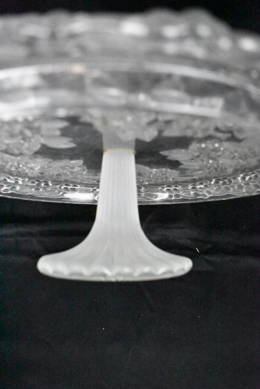 Cut Glass Pedestal Cake Stand. Grapes & Leaves Design
