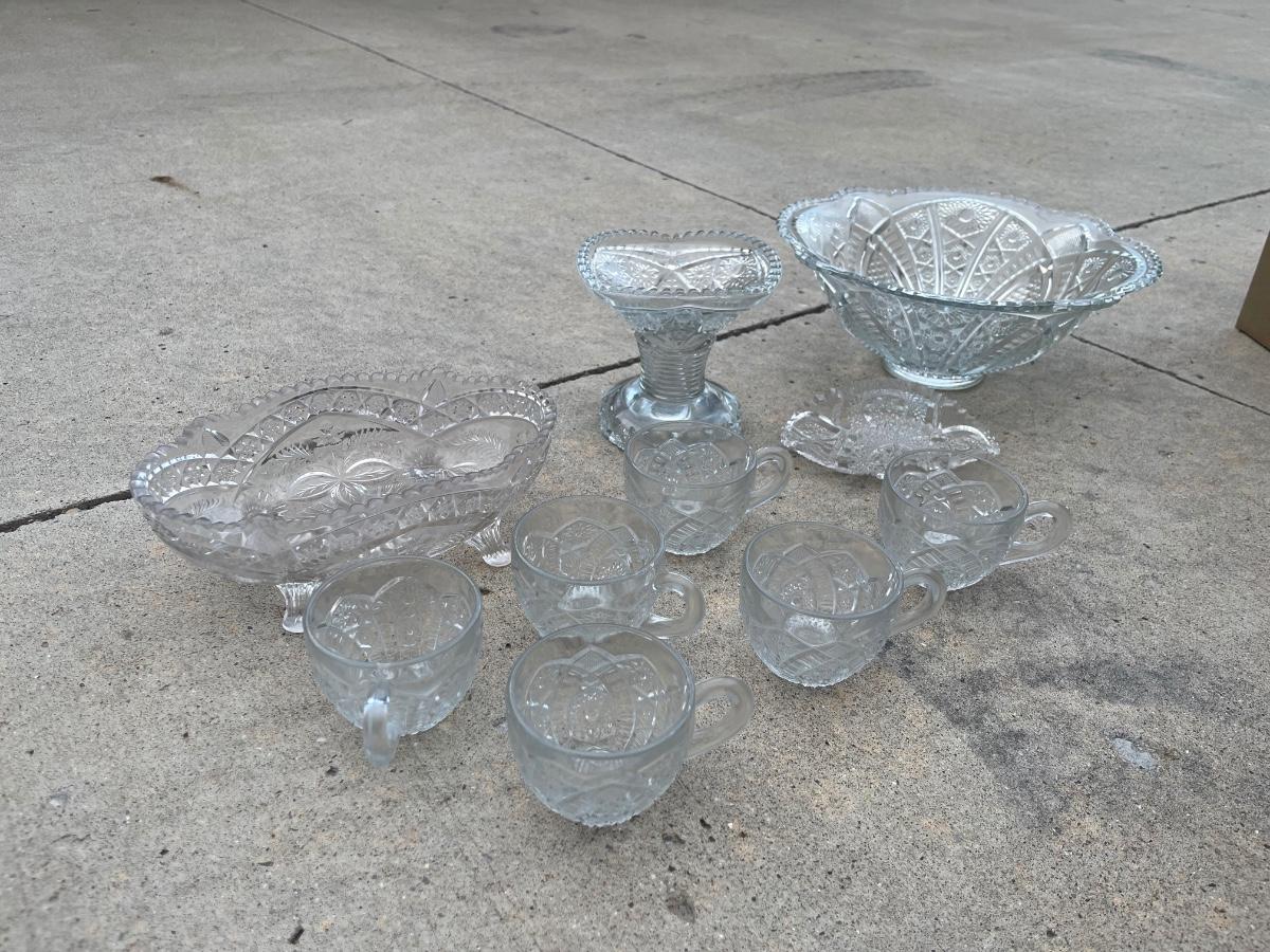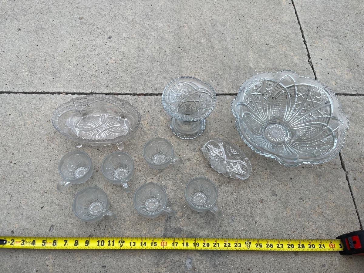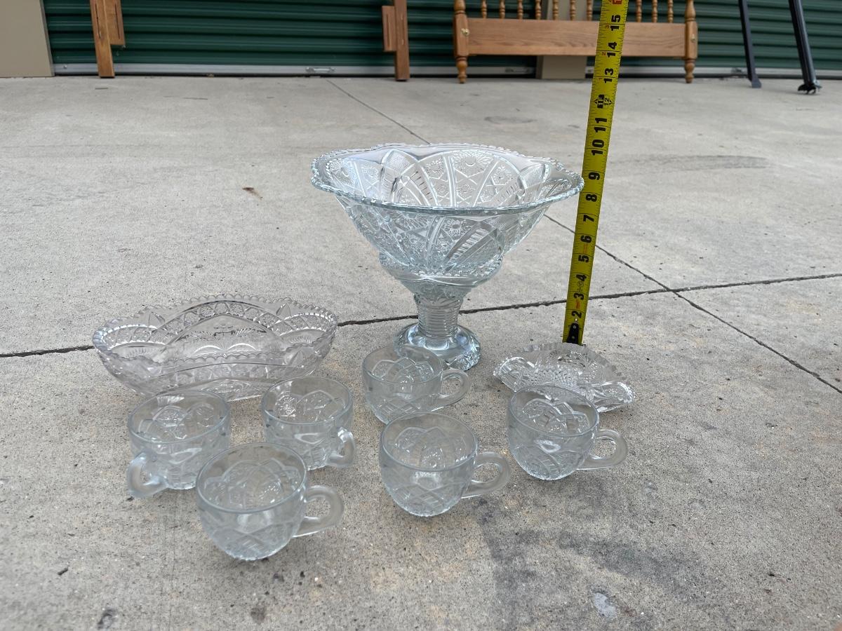 Cut Glass Punchbowl Set Plus 2 Serving Plates (Lot of 10)