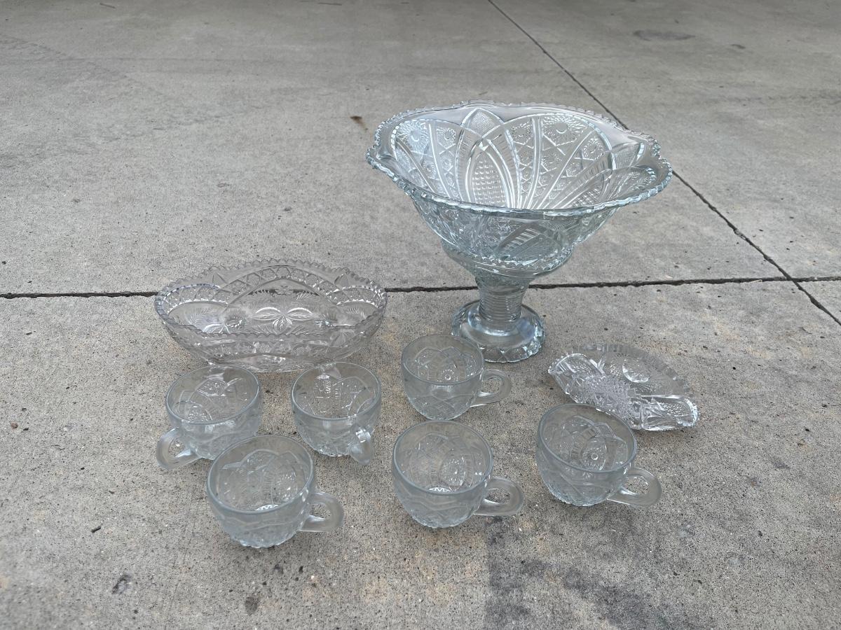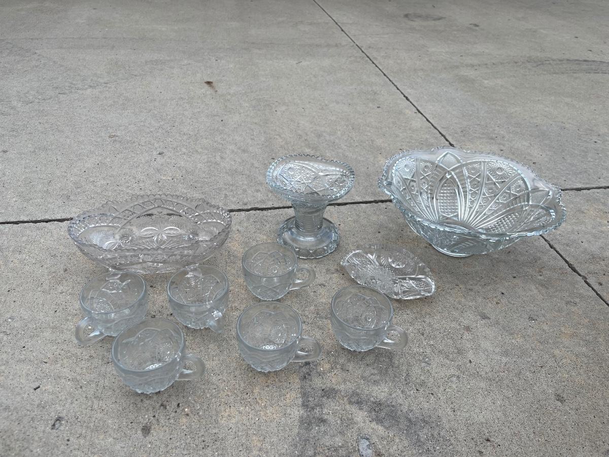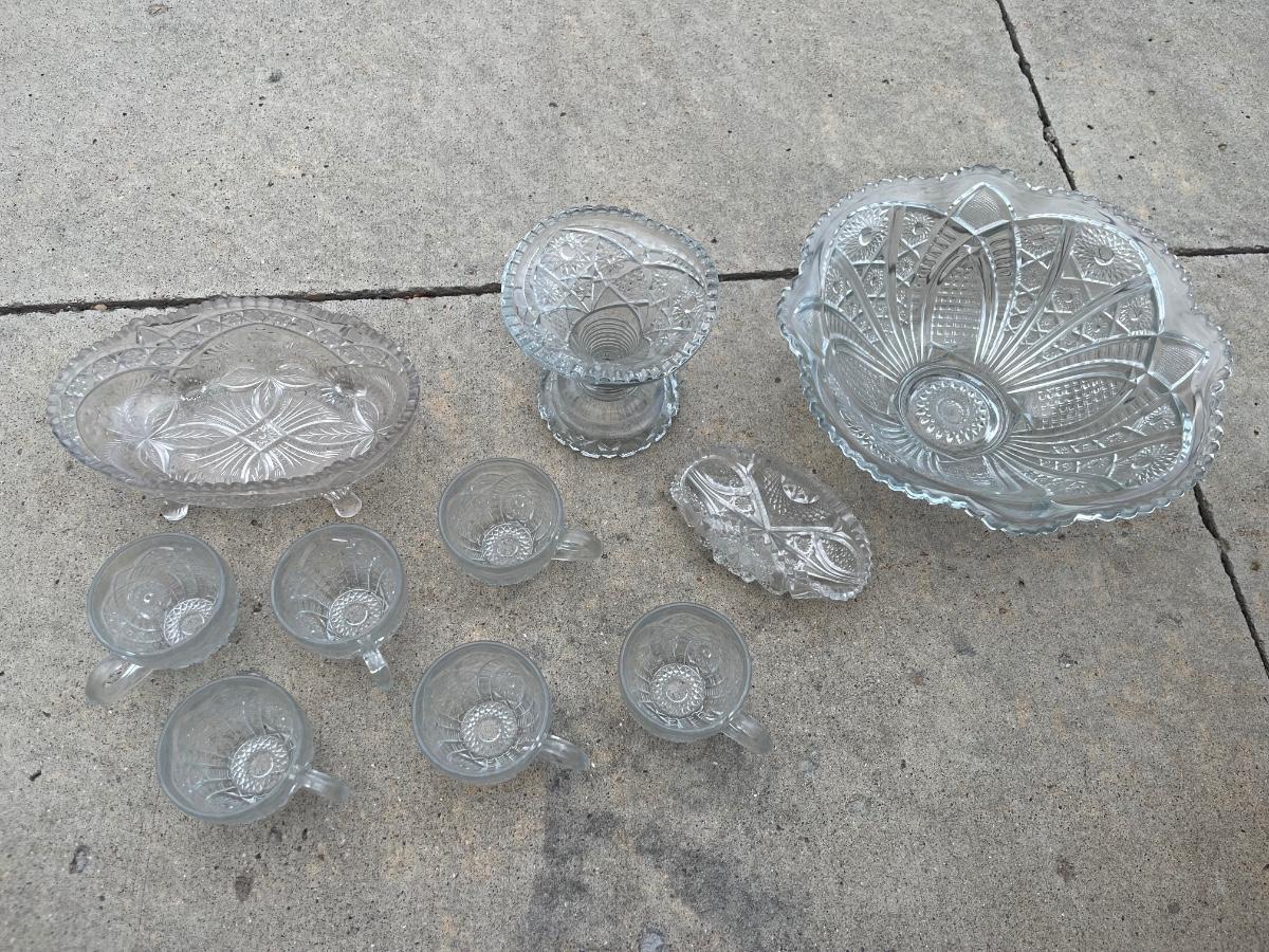 Cut Glass Punchbowl Set Plus 2 Serving Plates (Lot of 10)