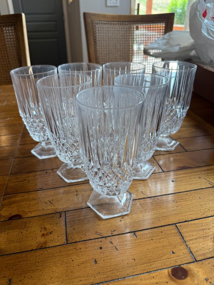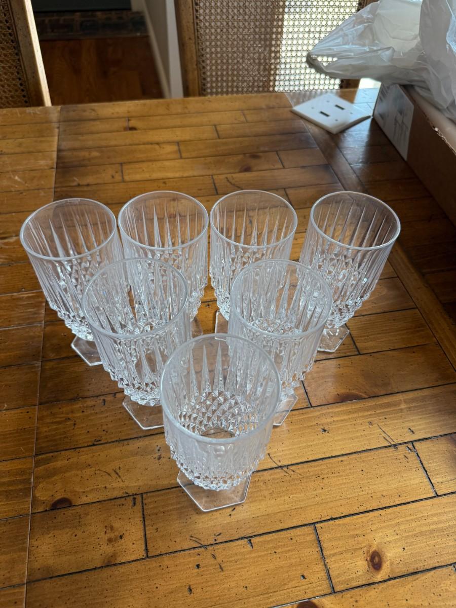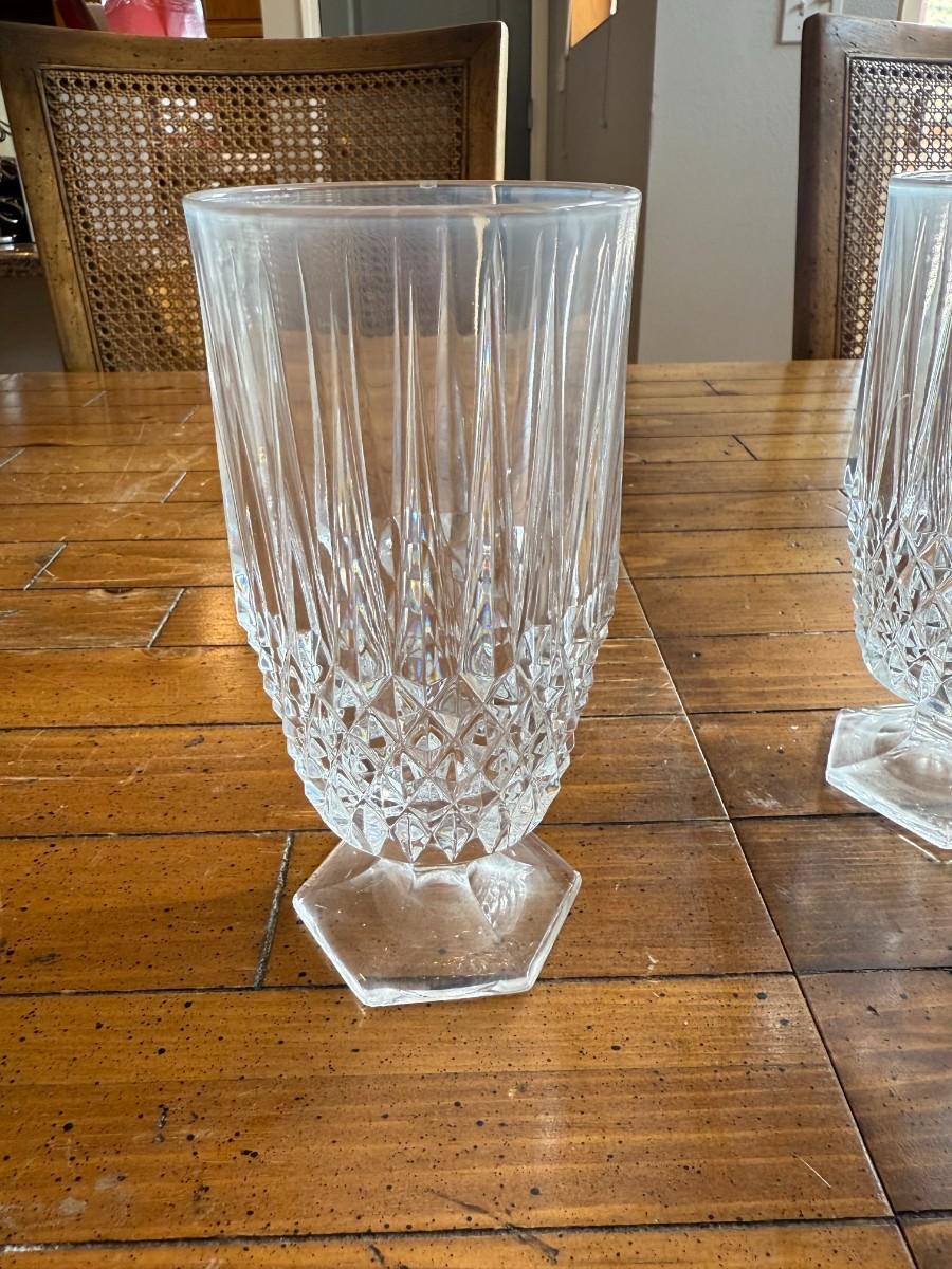 Elegant cut glass tumblers with hexagonal bases and a vintage-inspired diamond pattern. Perfect for water, cocktails, or display.