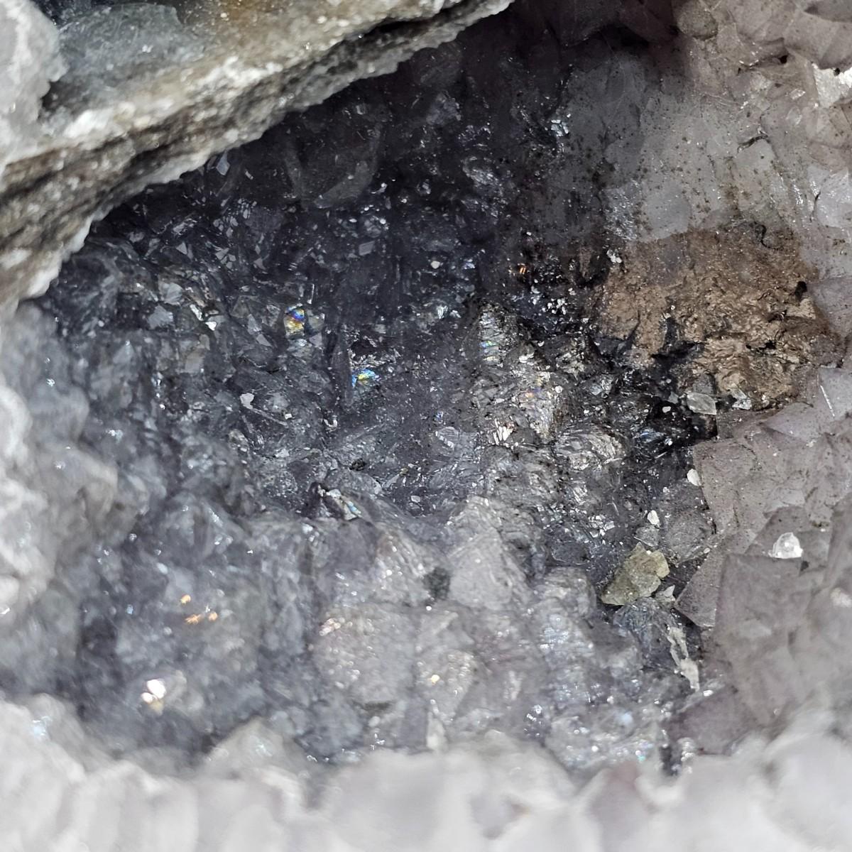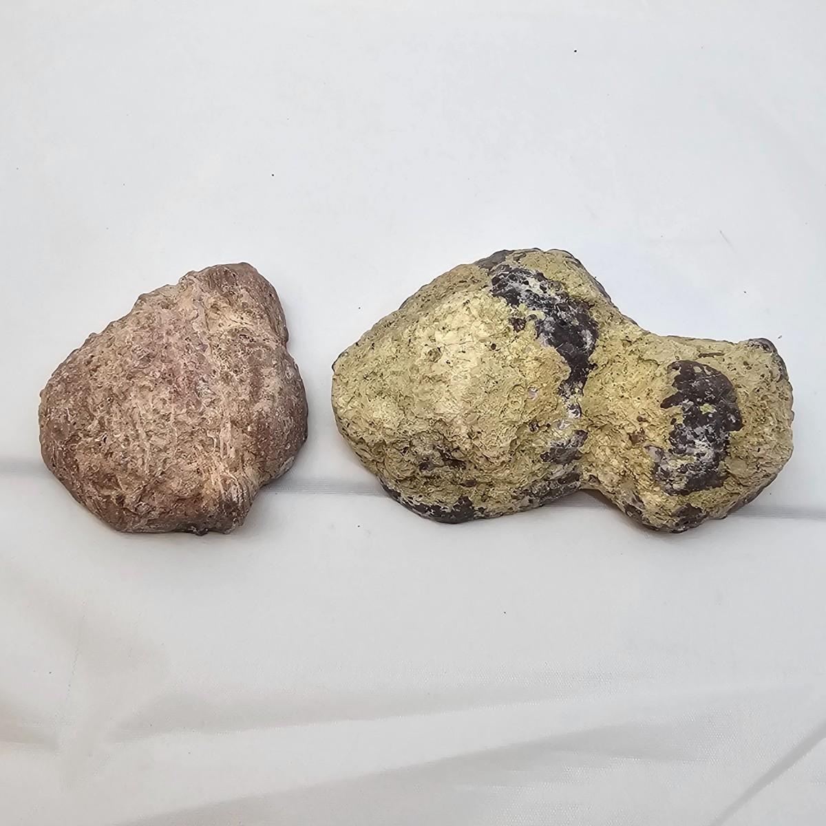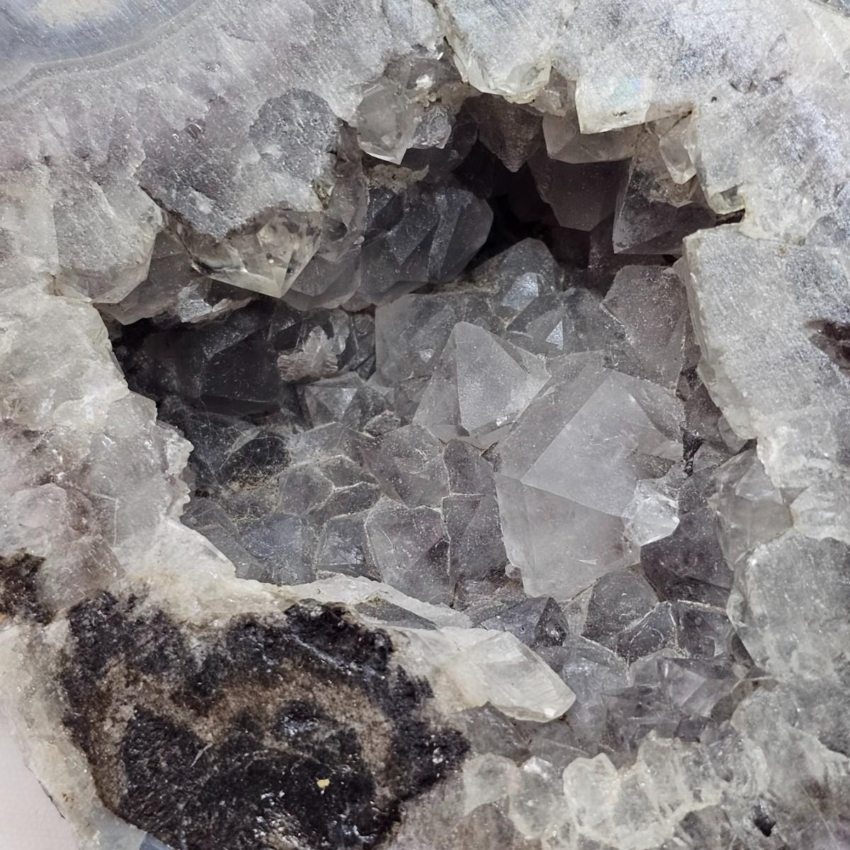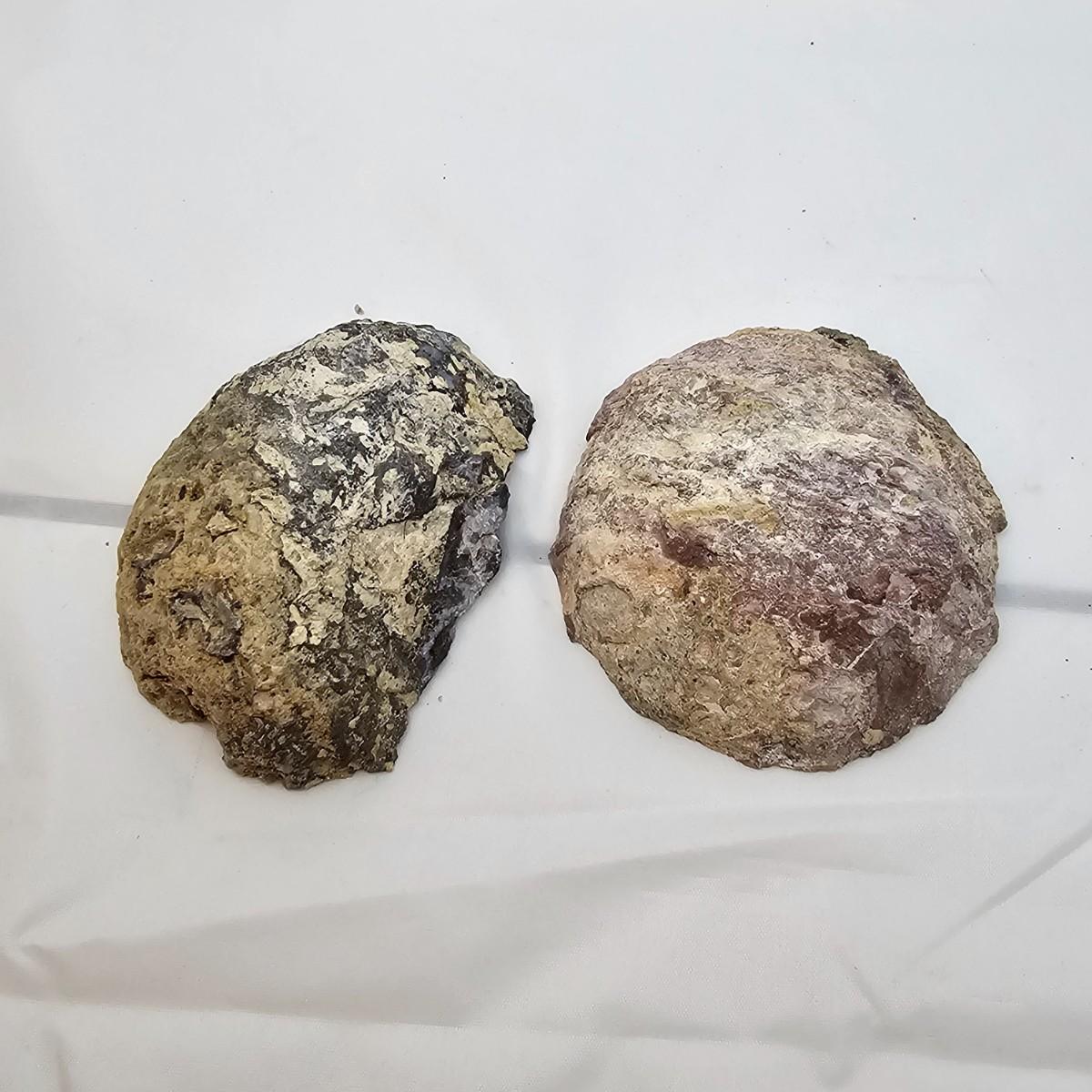 Fifteen beautiful examples of agate nodules that have been sliced open and polished to show off their inner beauty. To the untrained eye the outside of these appear to be nothing but rough forms, but inside a treasure awaits. No two ever alike, different arrays and crystal structures. Largest piece measures 5" x 5.5" x 3"H, smallest is 1" x 1.25" x 1"H. Plastic drawer included with lot. See photos for details.