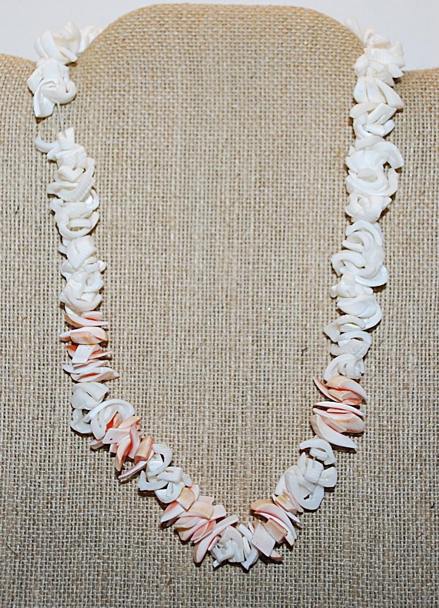 Cut Shell-Style NECKLACE with Pink & White Shells and a Barrel Style Closure 17" L