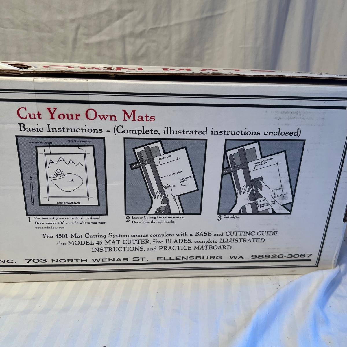 This lot includes an Alto’s Mat cutting system that comes with box, an additional smaller mat cutter plus a handheld cutter along with a few more accessories that includes various pieces of mat.