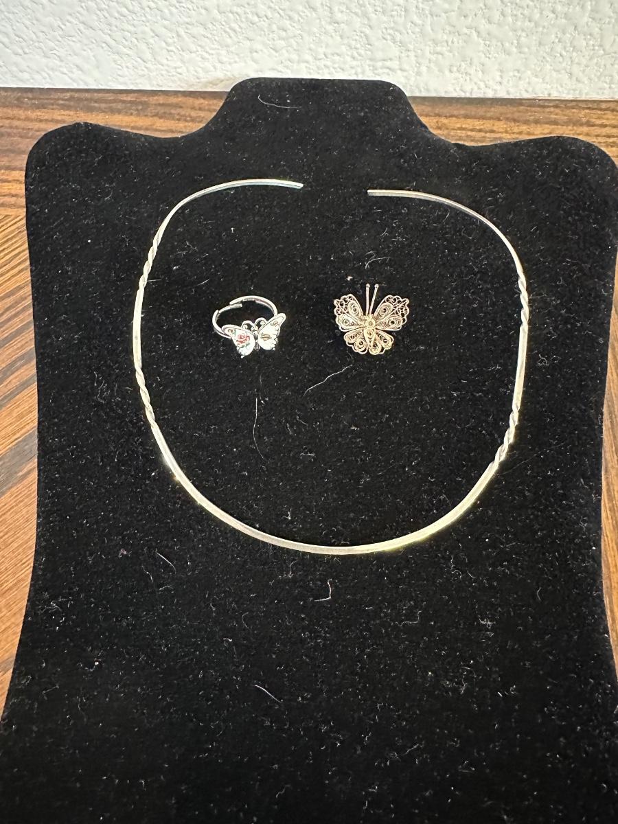 CUTE 925 BUTTERFLY RING AND PIN AND 925 COLLAR NECKLACE