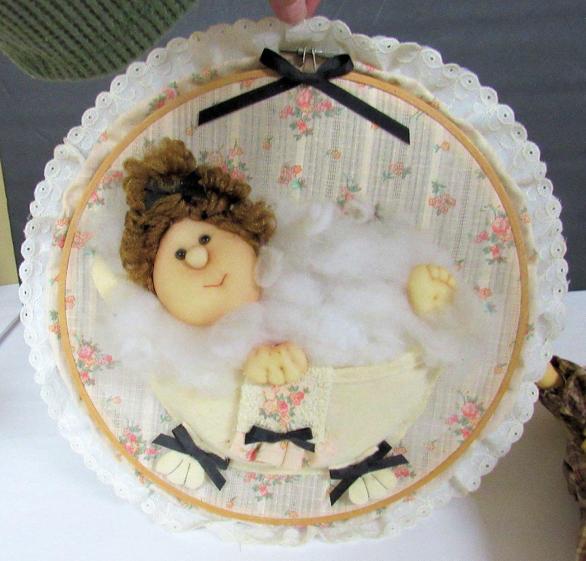 Cute Bathroom Wall Hanging Lady In Tub and Fabric Doll