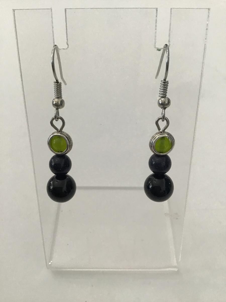 Cute Black Agate & Serpentine bead dangle earrings