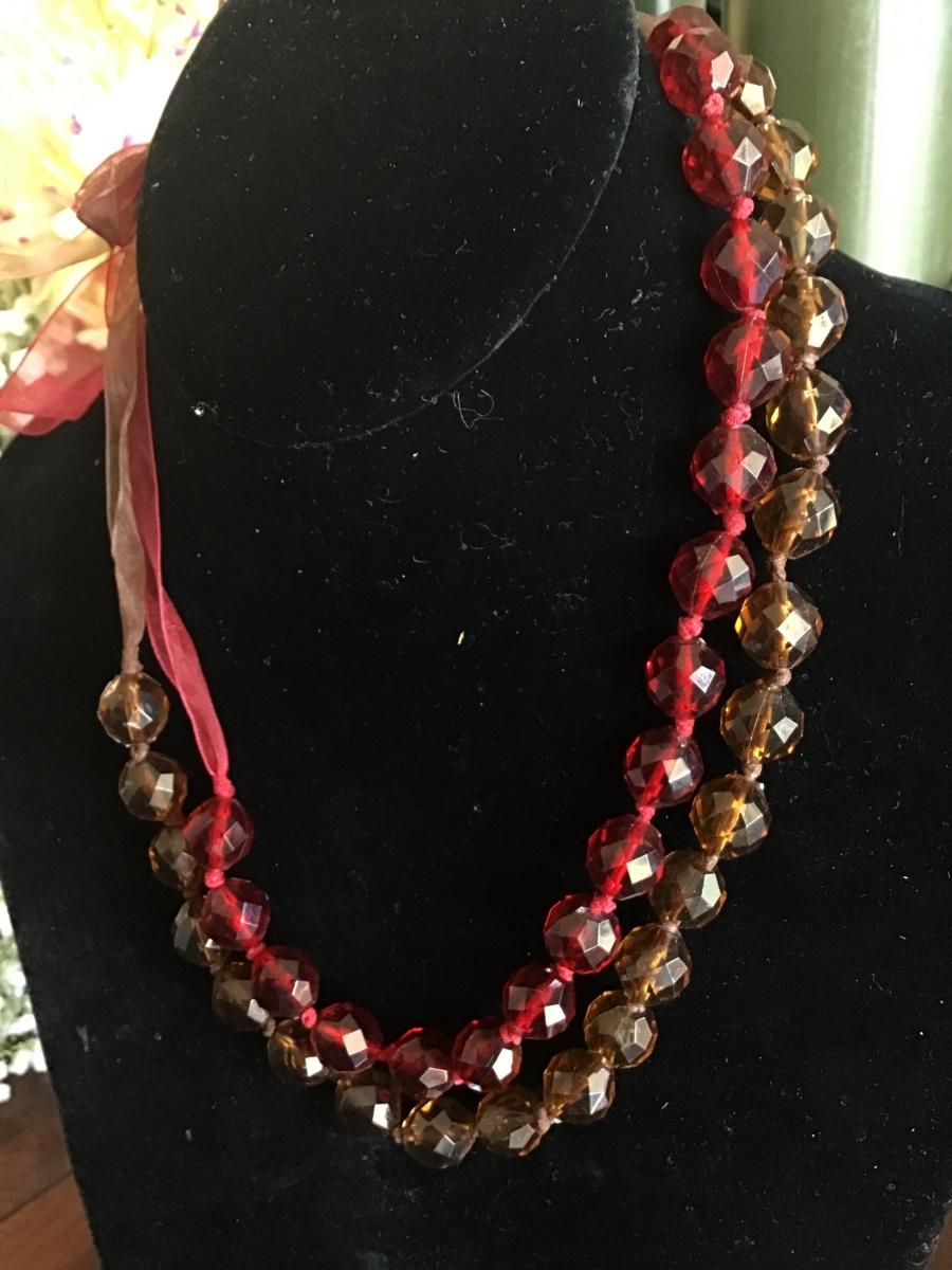 Cute Cranberry and Fall Brown Faceted Fashion Necklace