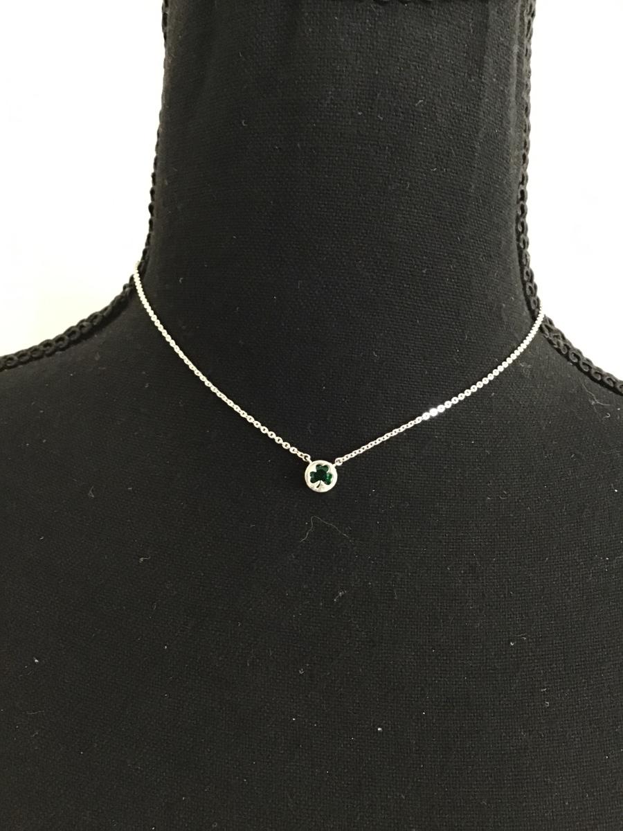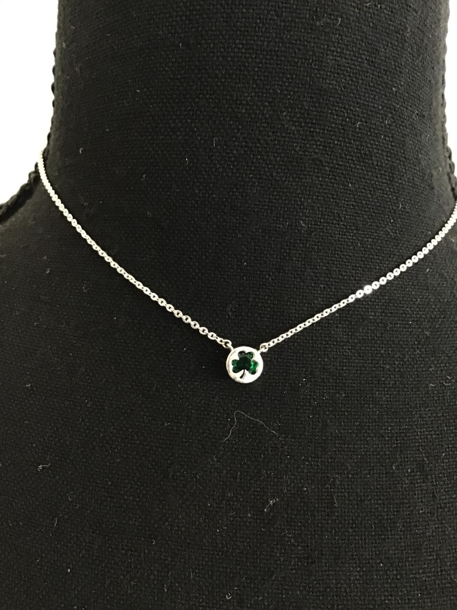 Cute Crystal green shamrock, silver tones necklace
