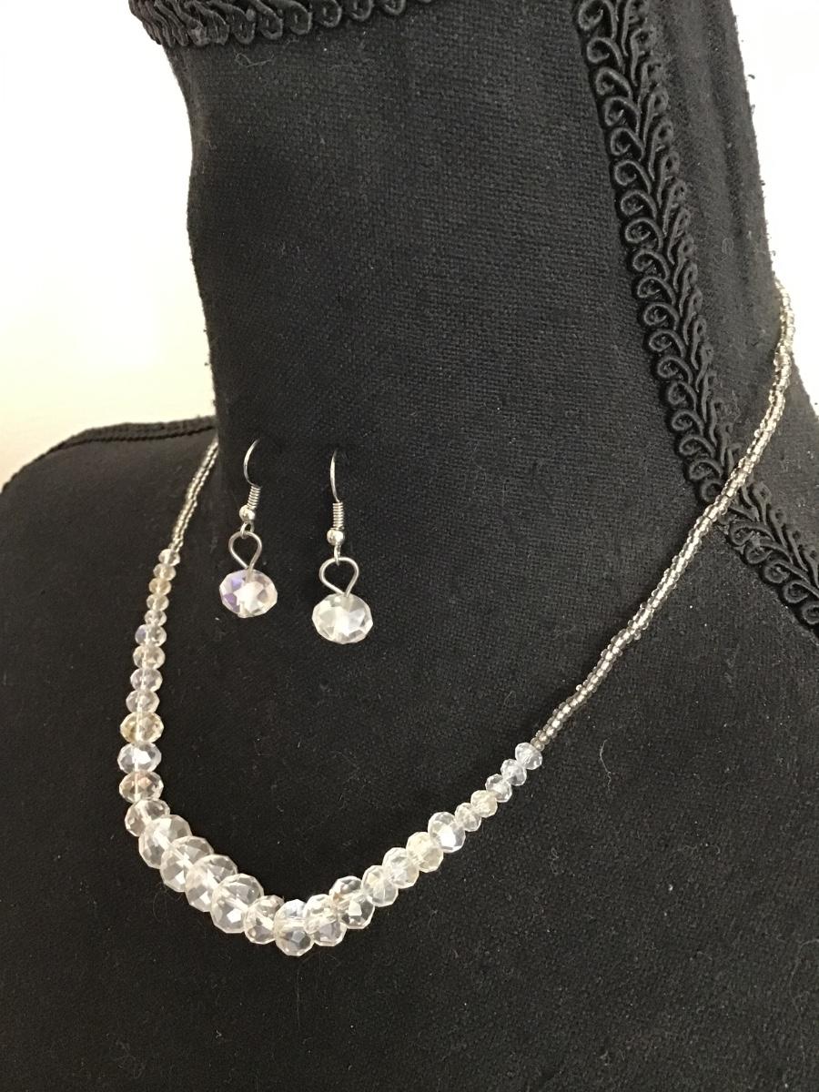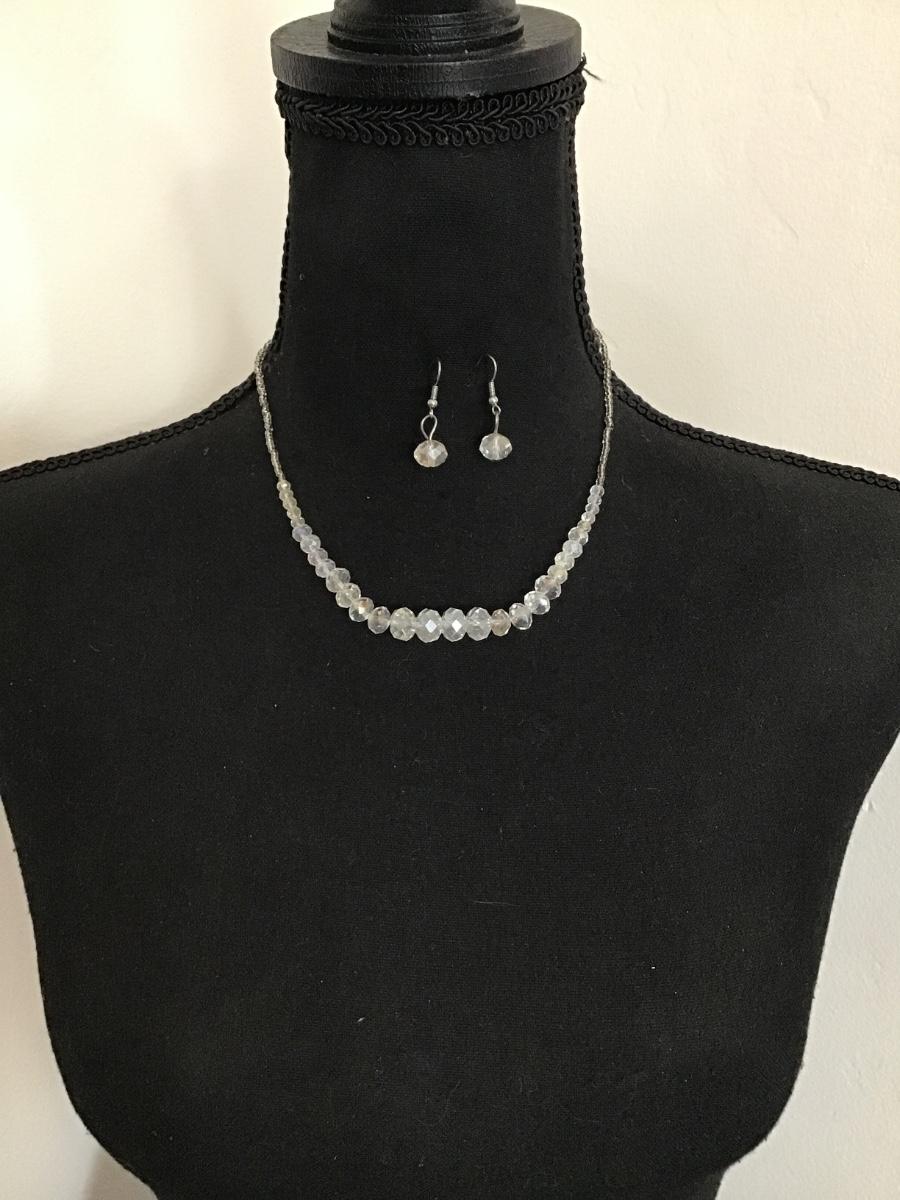 Cute Crystal or faceted, glass bead necklace, and matching earring set