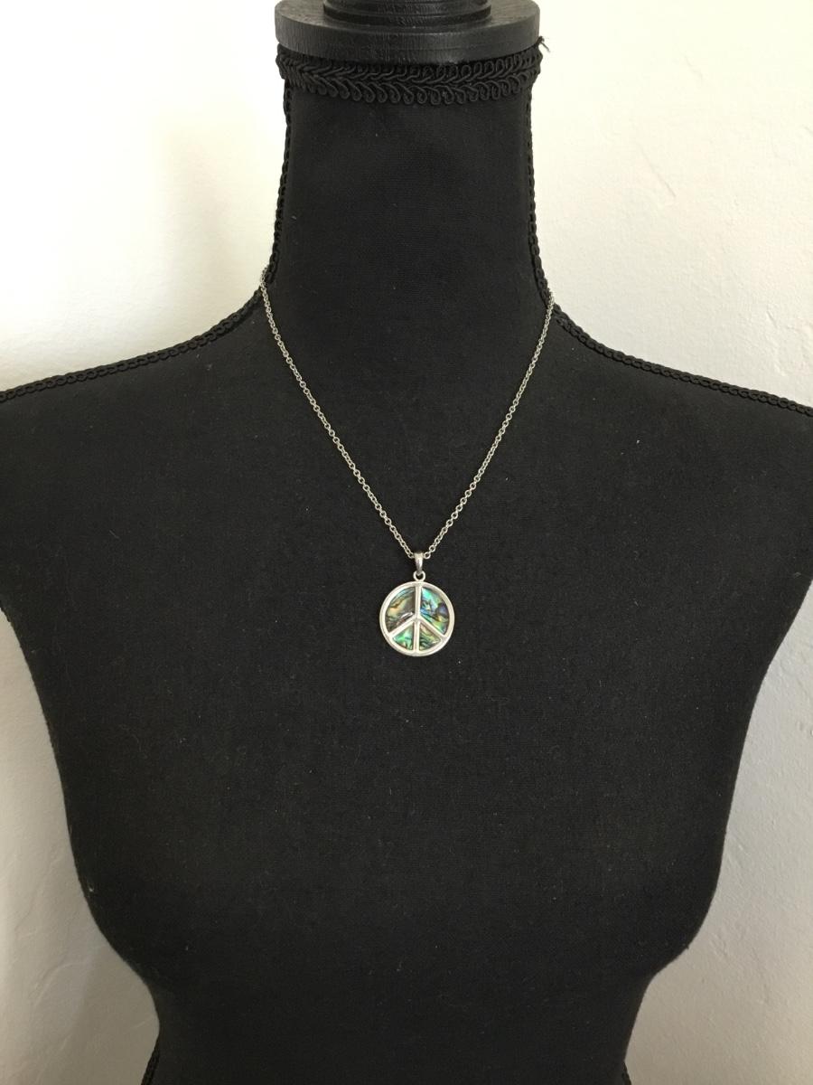 Cute Faux, Abalone shell peace, sign, pendant, necklace