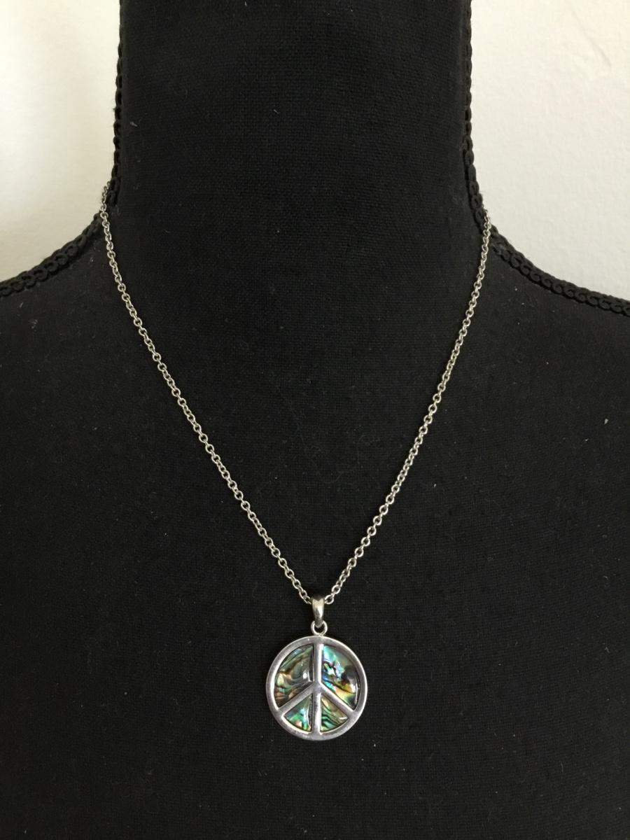 Cute Faux, Abalone shell peace, sign, pendant, necklace