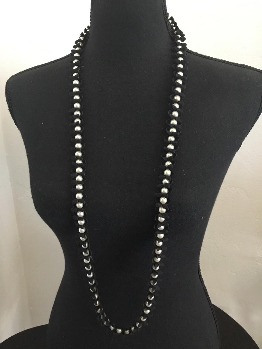 Cute faux pearl black flower necklace