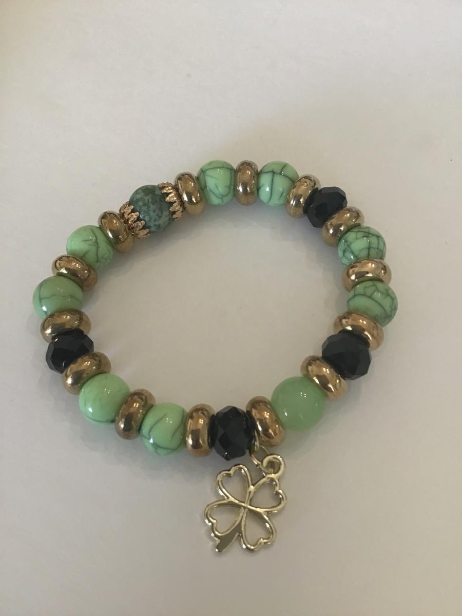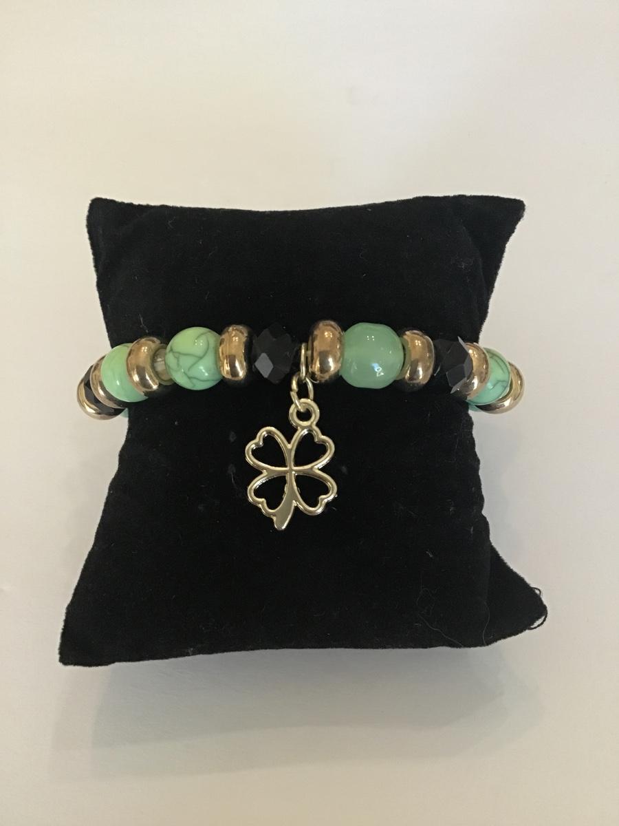 Cute faux stone stretch bracelet with charm