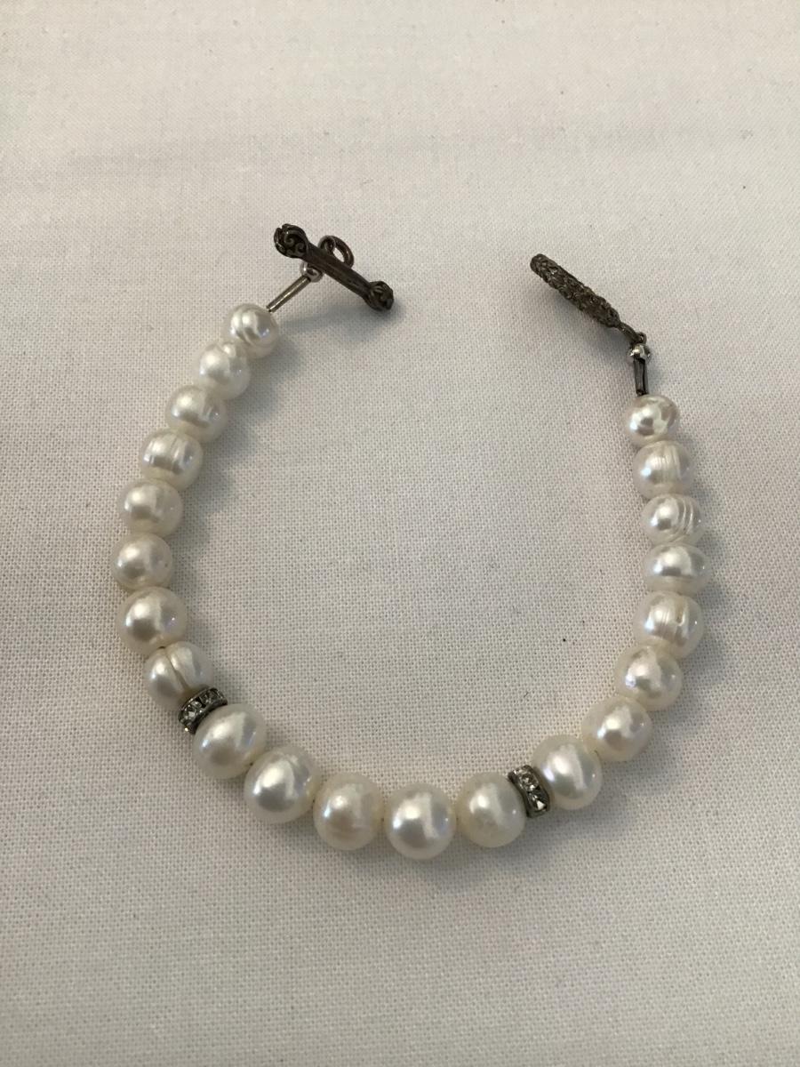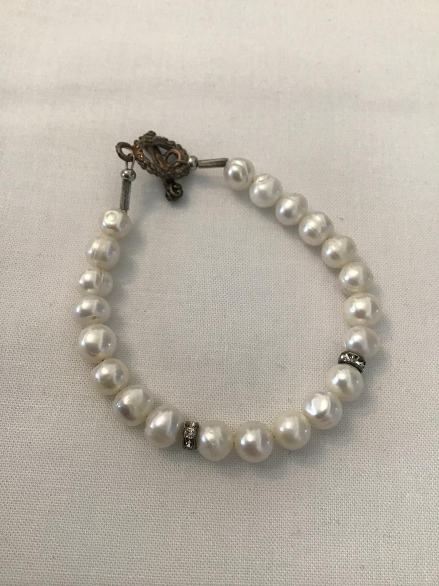 Cute genuine pearl freshwater, pearl toggle bracelet