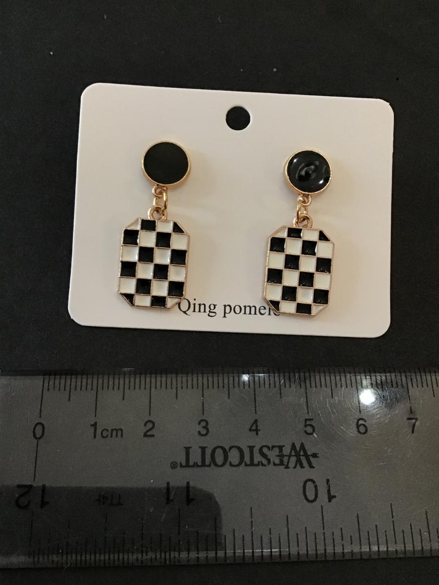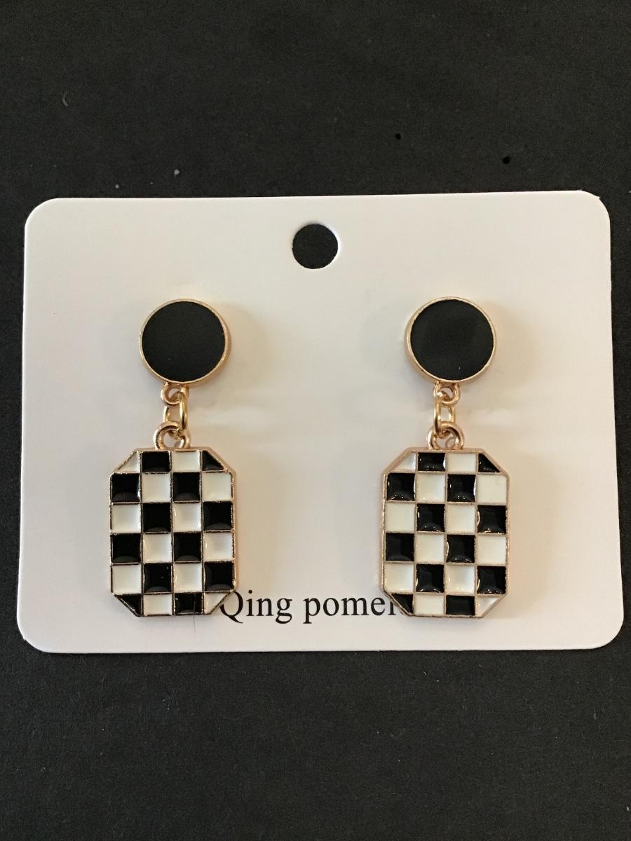 Cute, Gold tone, black, and white checkered earrings