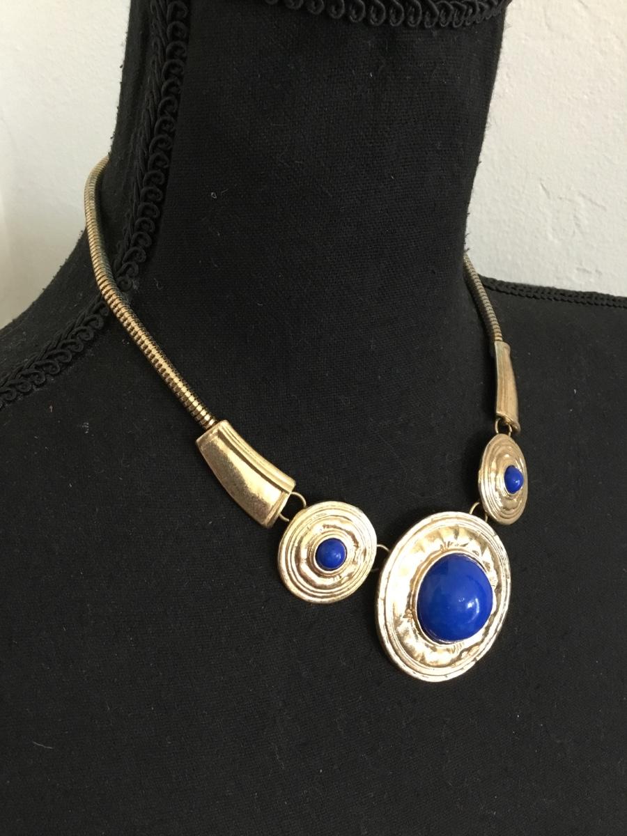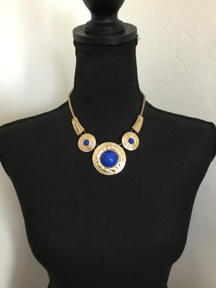 Cute gold tone Electric blue statement necklace