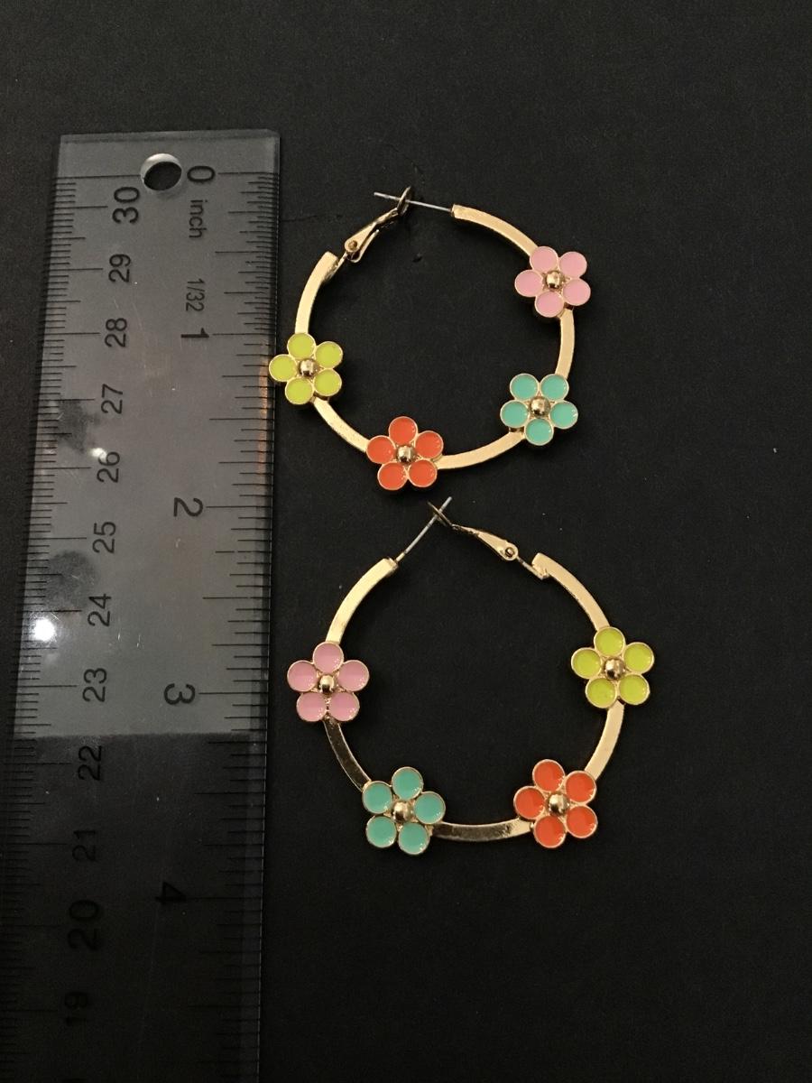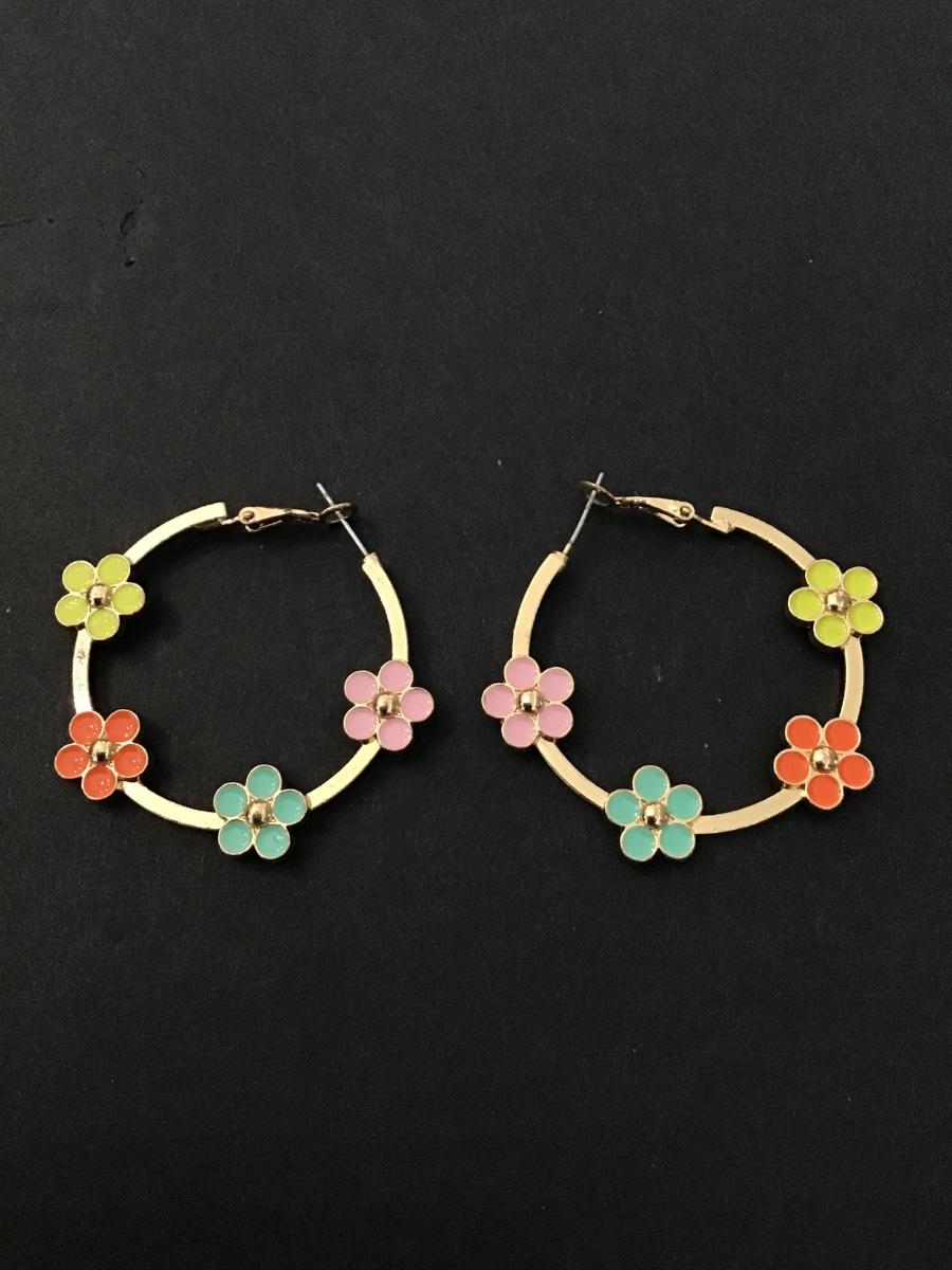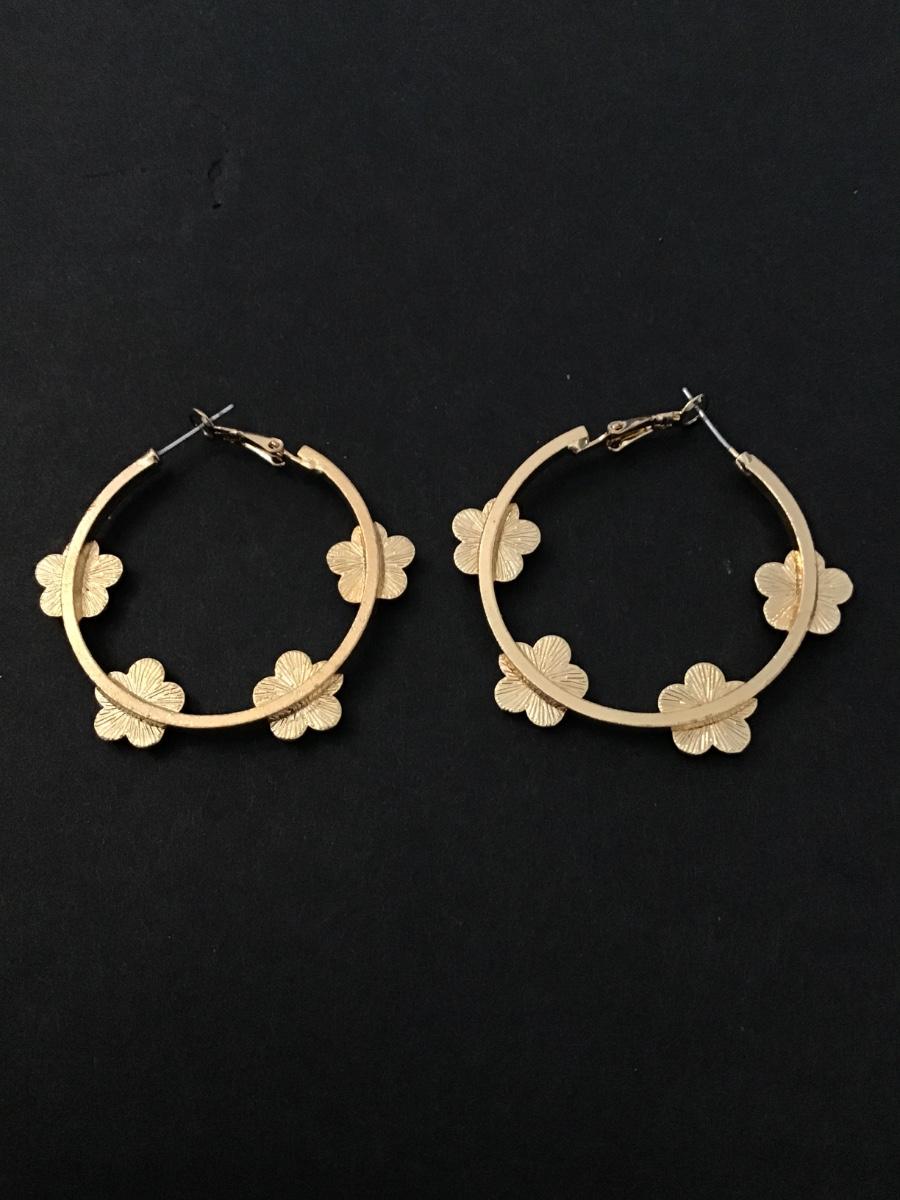 Cute Gold tone flower hoop earrings