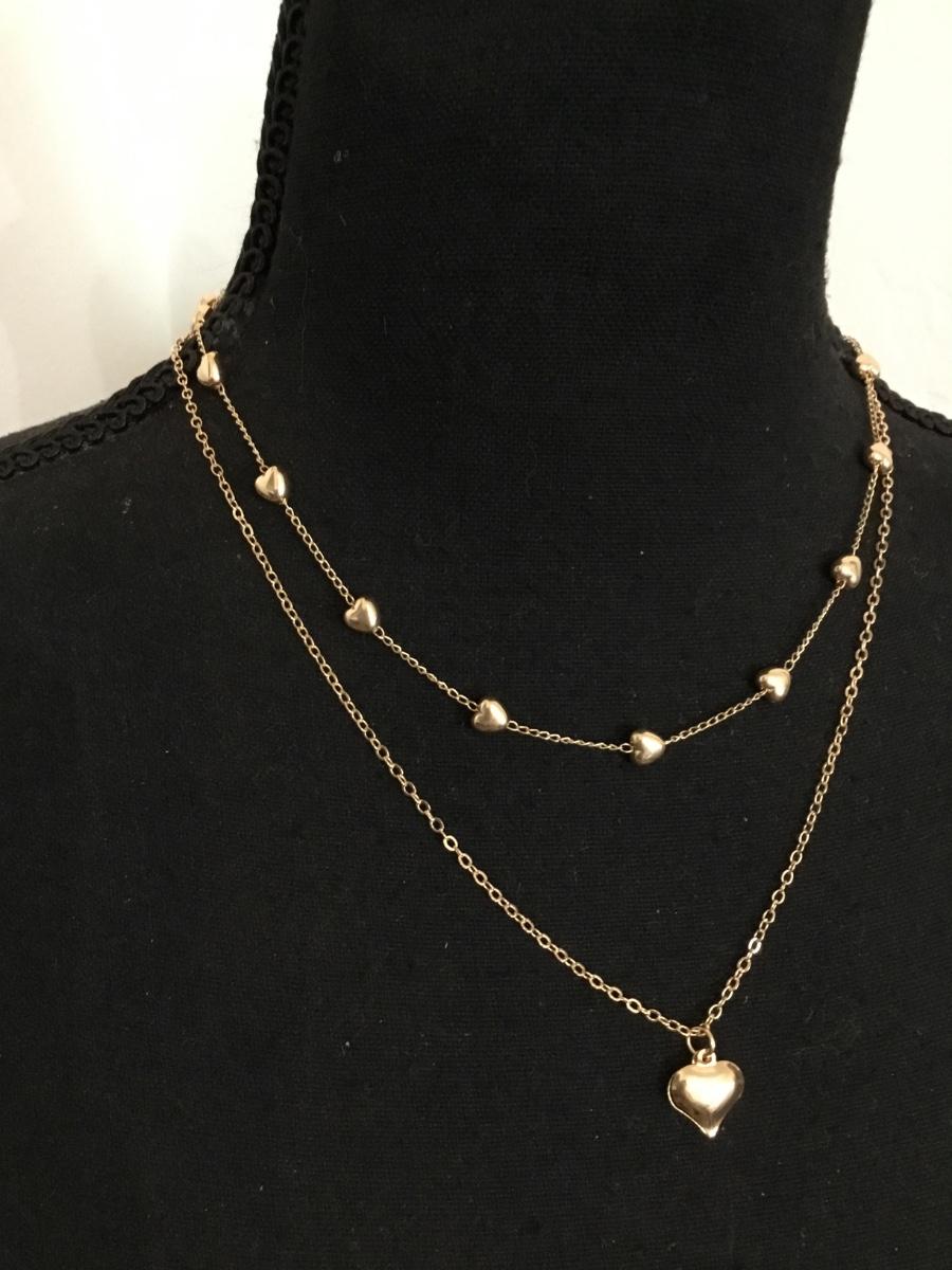 Cute gold tone heart layered necklace