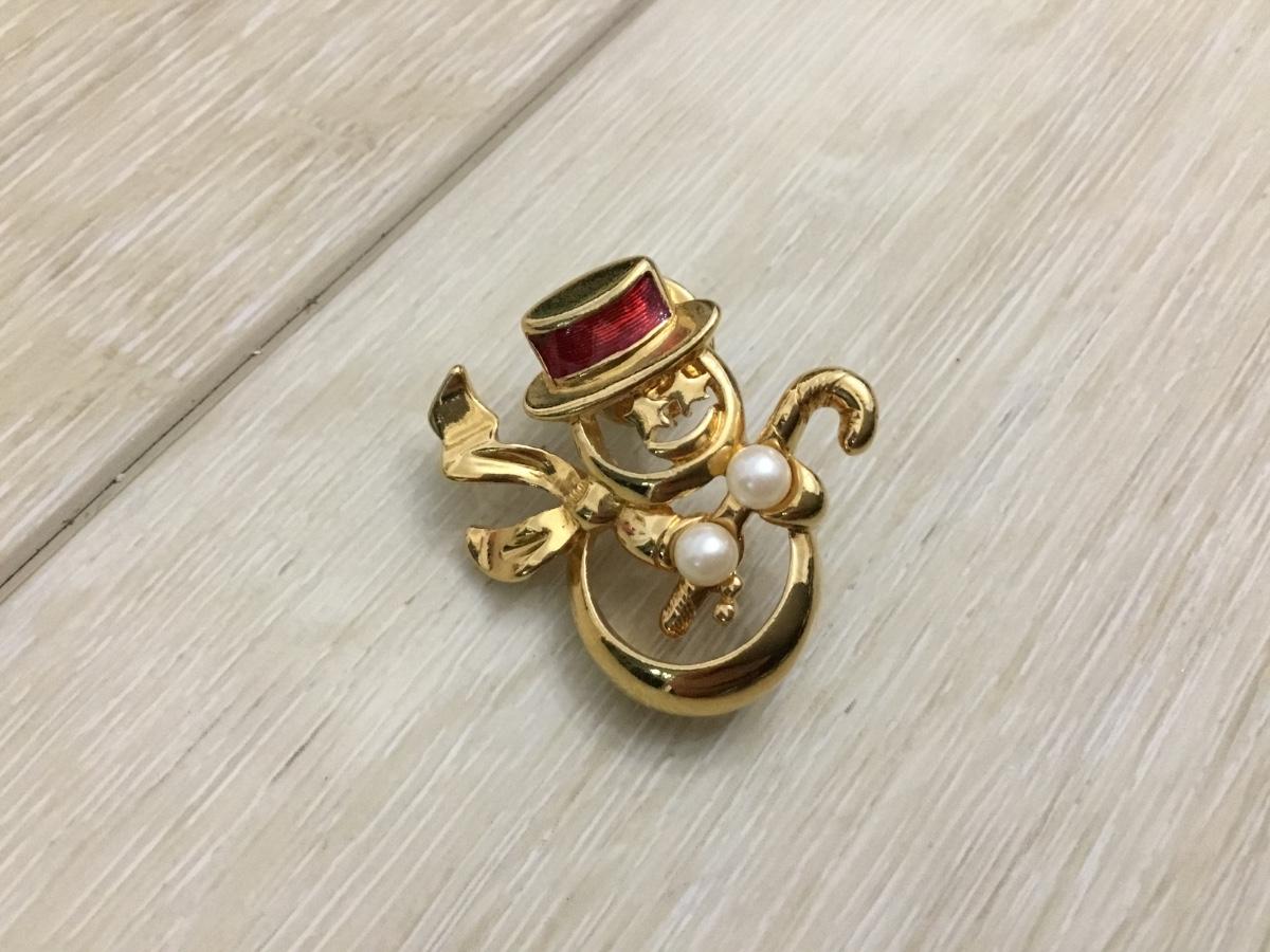Cute gold tone snowman pin