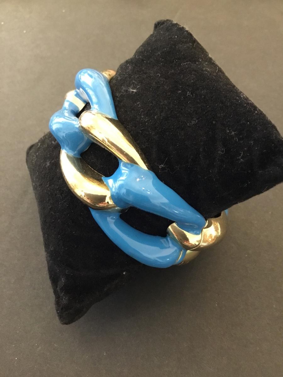 Cute, gold, toned, electric blue enamel chain-link hinged bracelet