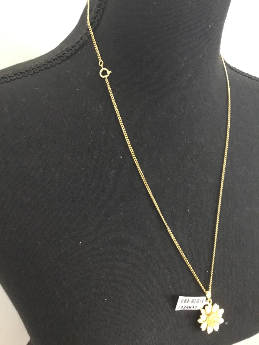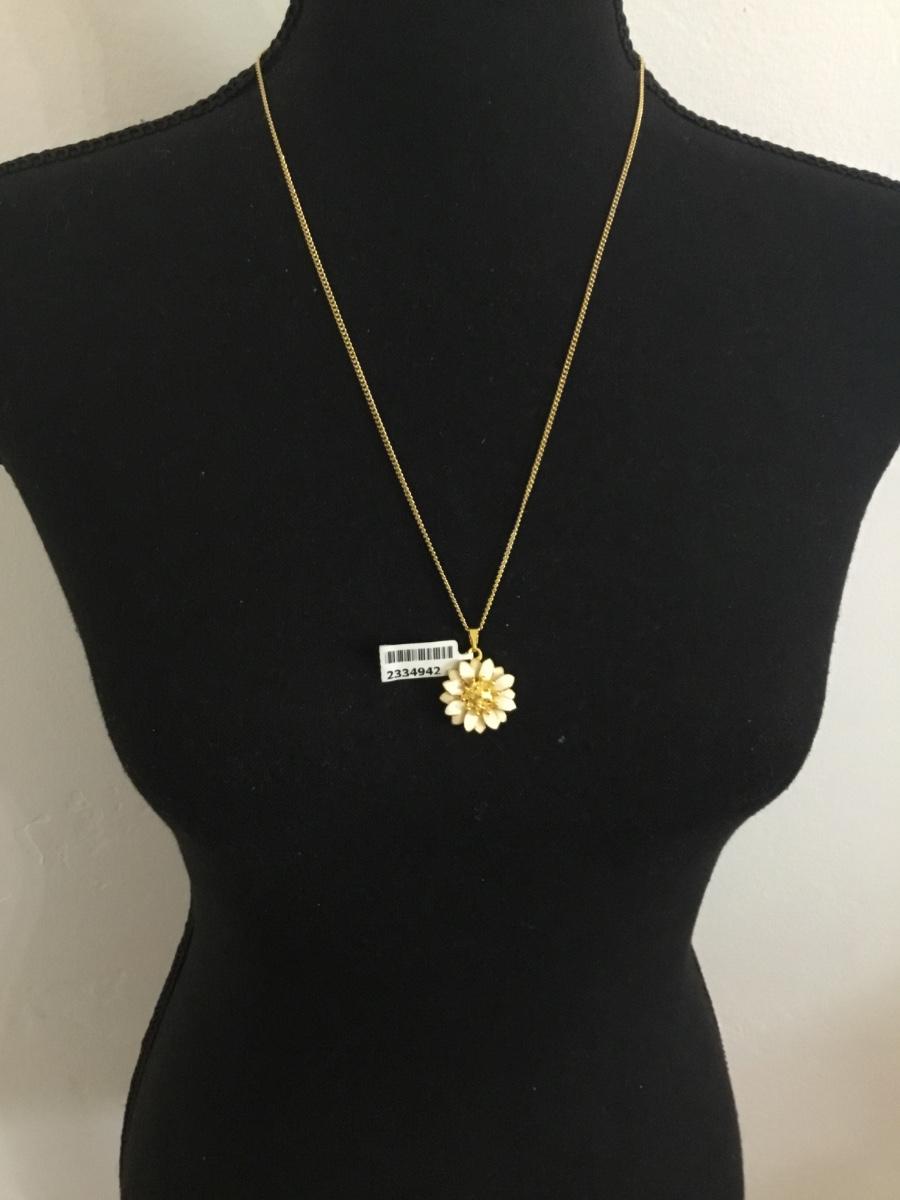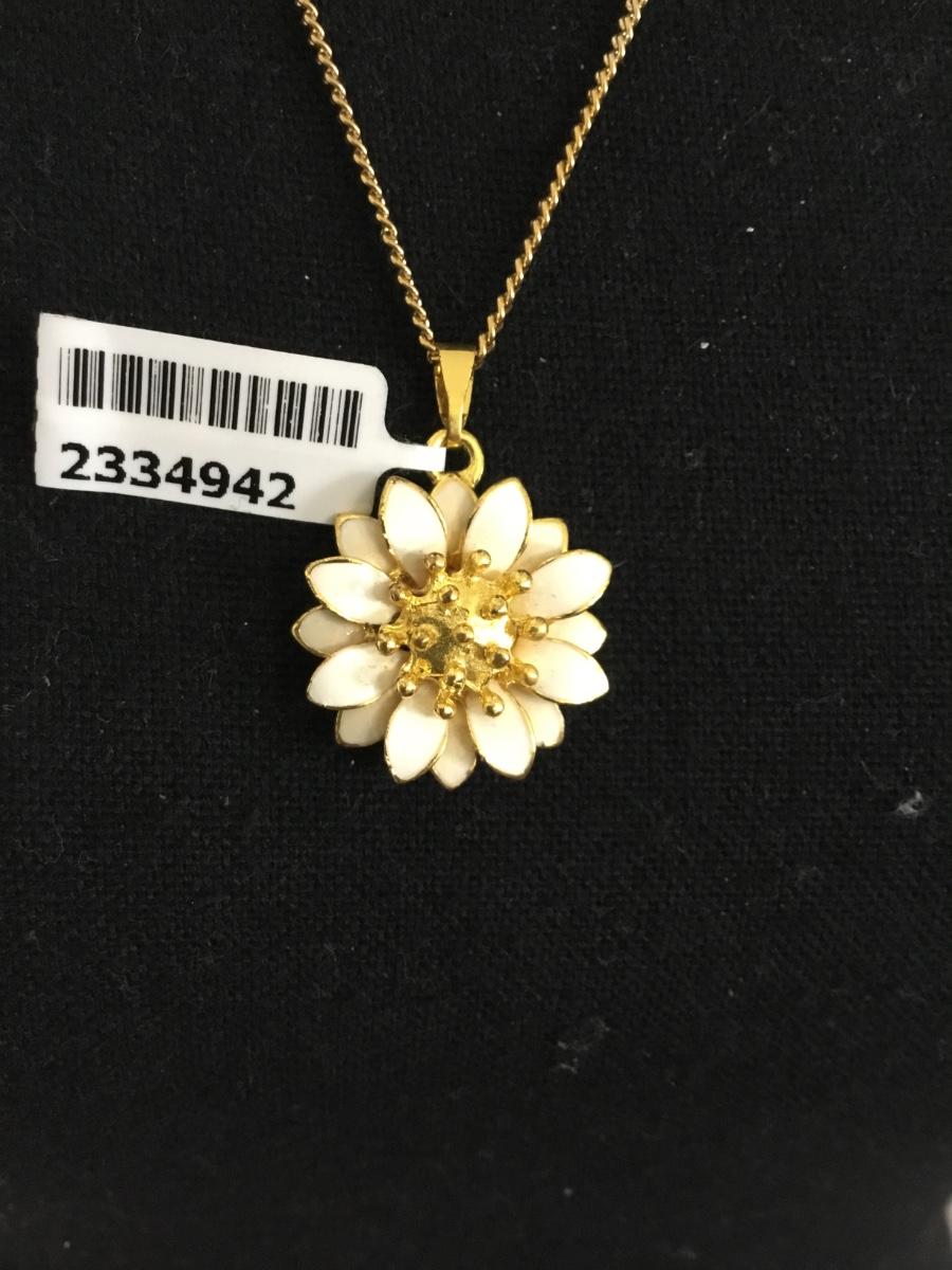 Cute gold toned white enamel flower pendant on gold tone, chain necklace